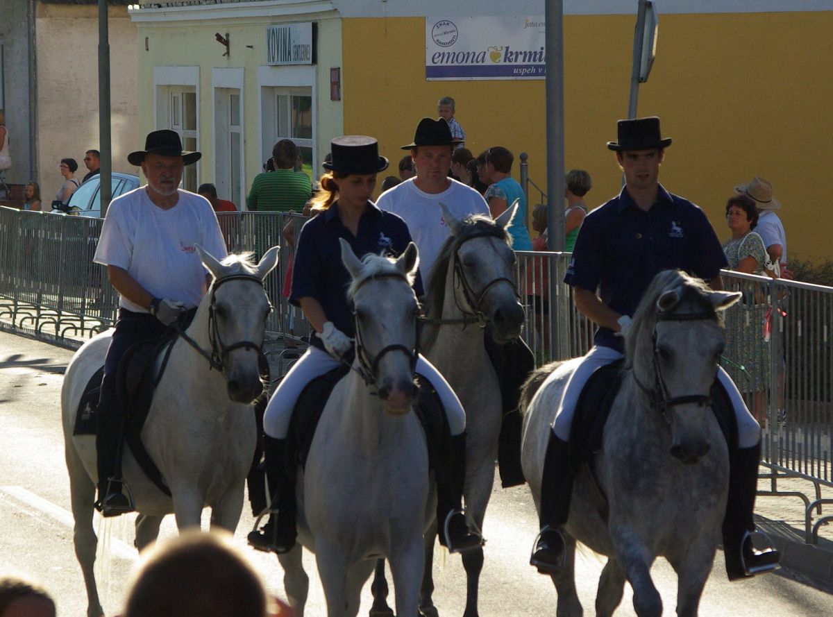 Povorka, ki je šla skozi center Šentjerneja in je kot vedno privabila množice gledalcev, se je nadaljevala s predstavitvijo številčnih občinskih društev: kulturnih, vinogradniških, turističnih, upokojenskega, lovskega, čebelarskega, RK do športnih in drugih. Zanimivi so bili konjeniki, pa stari avtomobili, motoristi … Dogajanje sta z balkona Majzljeve gostilne zanimivo spremljala napovedovalca Lojze Bojanc in Janez Selak.