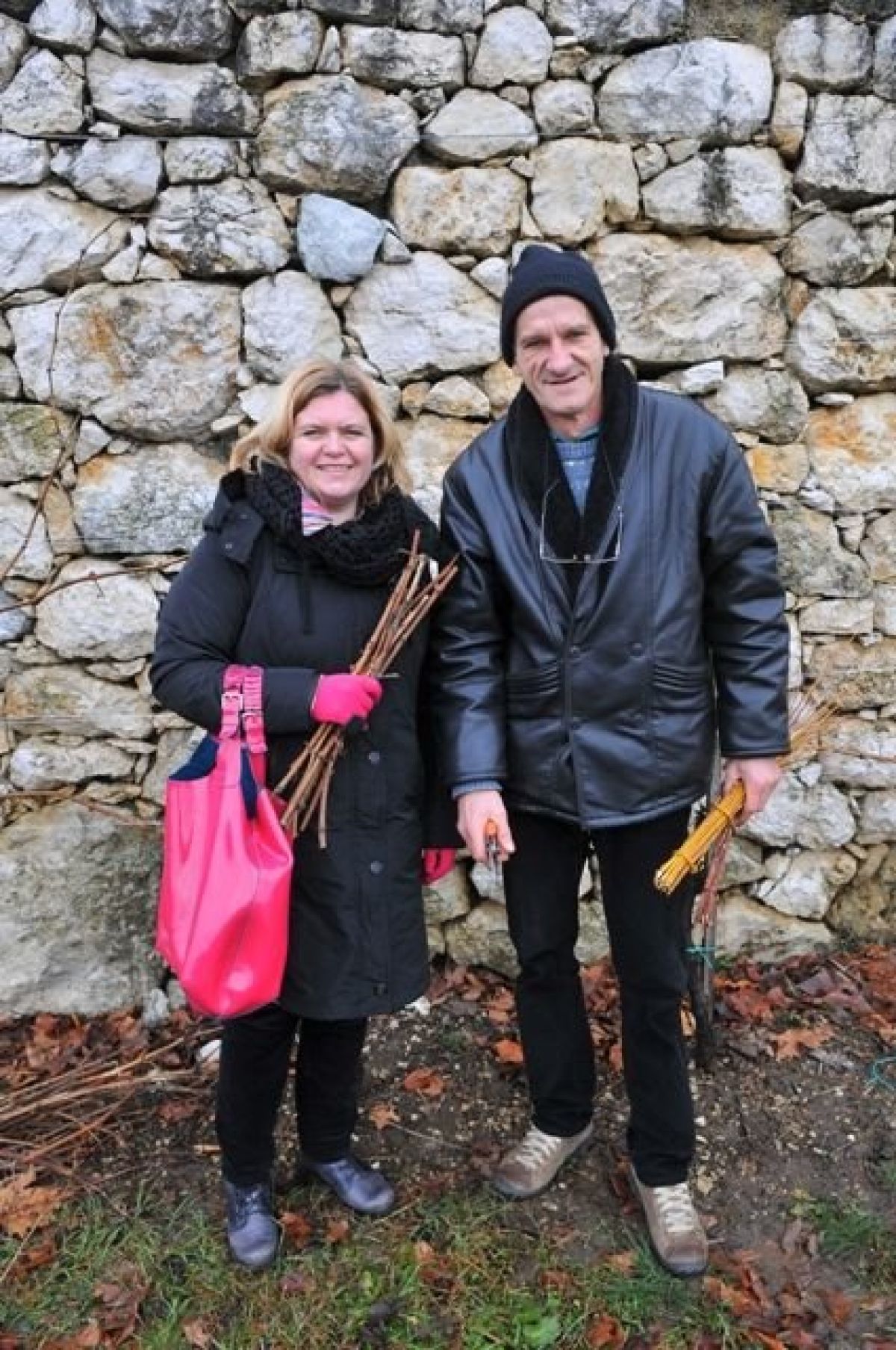 Člana DV Šentjanž, Branko Keber in Rudi Bec, sta izvedla praktični prikaz rezi vinske trte modre frankinje, kar sta podkrepila s teorijo, tako da se so tudi manj vešči botri podučili, kako se reže trta, in to znanje uporabili pri delu. Po opravljenem so se ponovno zbrali pri grajski vili, kjer jih je čakalo še zadnje "častno" dejanje. Ob kamnitem zidu ob grajski vili namreč že od leta 2007 raste cepič najstarejše vinske trte na svetu z Lenta, žametna črnina. Rez sta opravila župan in direktorica KŠTM Sevnica.