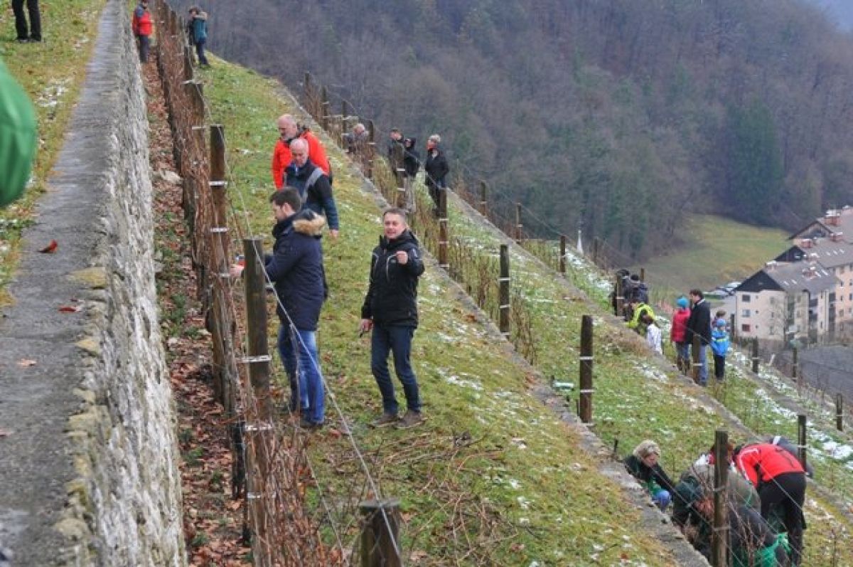 Potem ko je razmeroma mila zima omogočila vinogradnikom, da so mnogi že porezali svoje trte, so se tudi v Sevnici v grajskem vinogradu lotili prvega letošnjega vinogradniškega opravila - rezi grajskih trt modre frankinje. V organizaciji KŠTM Sevnica je tako po godu Sv. Vincenca, ki je 22. januarja, ko se po starih običajih lahko začnejo opravila v vinogradu, včeraj potekala že 7. tradicionalna grajska rez.