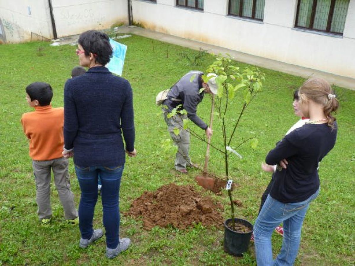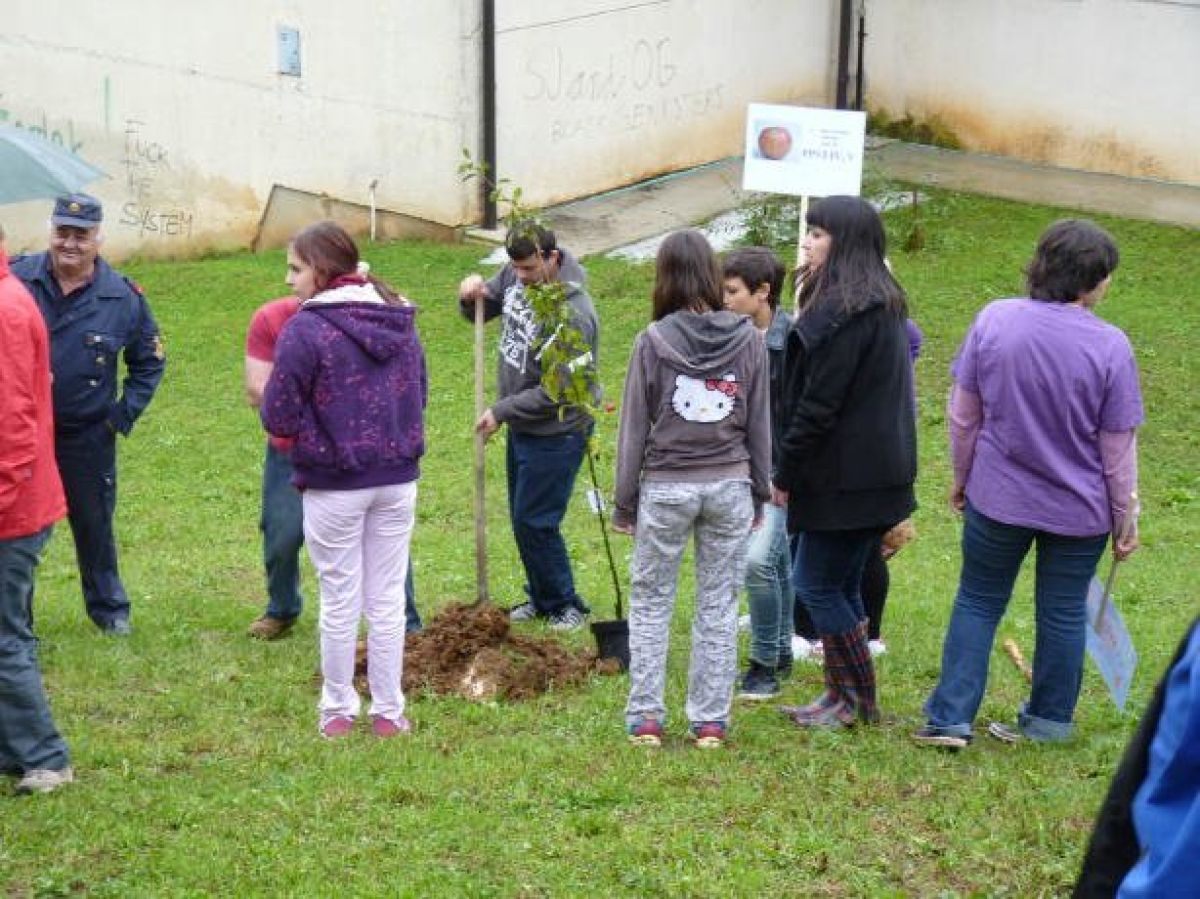 Pred sajenjem, ki ga ni zmotil niti dež, so učenci pripravili tudi prijeten kulturni program. V njem so se dotaknili zlasti sadja in prijateljstva.