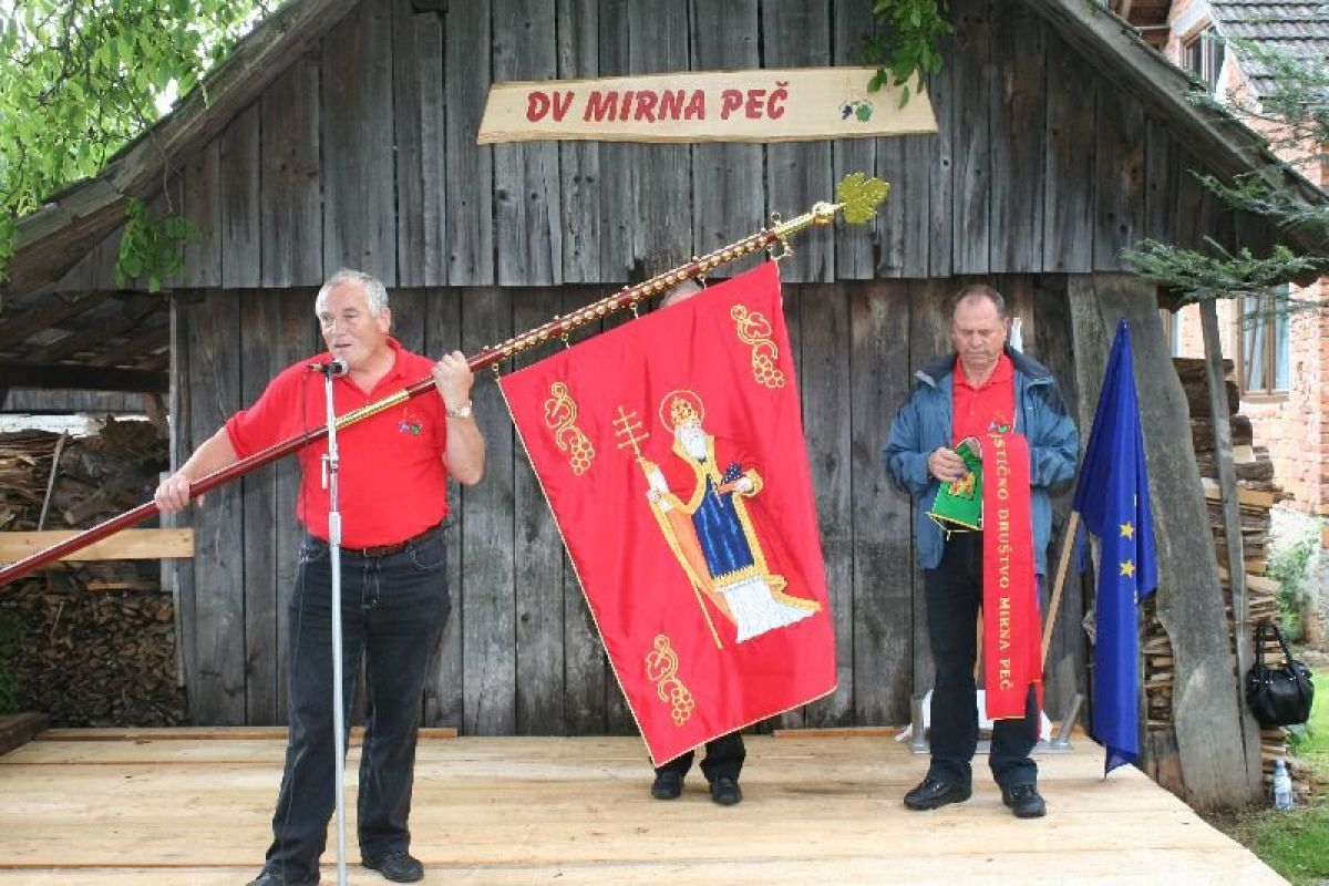 Včeraj je bil poseben dan za društvo vinogradnikov Mirna Peč, ki je pri cerkvi na Golobinjeku po maši, ki jo je daroval mirnopeški župnik Janez Rihtaršič, razvilo društveni prapor. V priložnostnem programu so nastopili moški pevski zbor Rožmarin, pevska skupina Čebelice in mirnopeški harmonikarji. Prapor sta v oskrbo iz rok predsednika vinogradnikov Franca Somraka prejela praporščaka Jože Cesar in Alojz Primc. Razvitja so se poleg praporjev okoliških vinogradniških in nekaterih mirnopeških društev udeležili tudi kralj cvička Tone Unetič, predsednik zveze društev vinogradnikov Dolenjske Jože Žura in domači župan Zvone Lah.