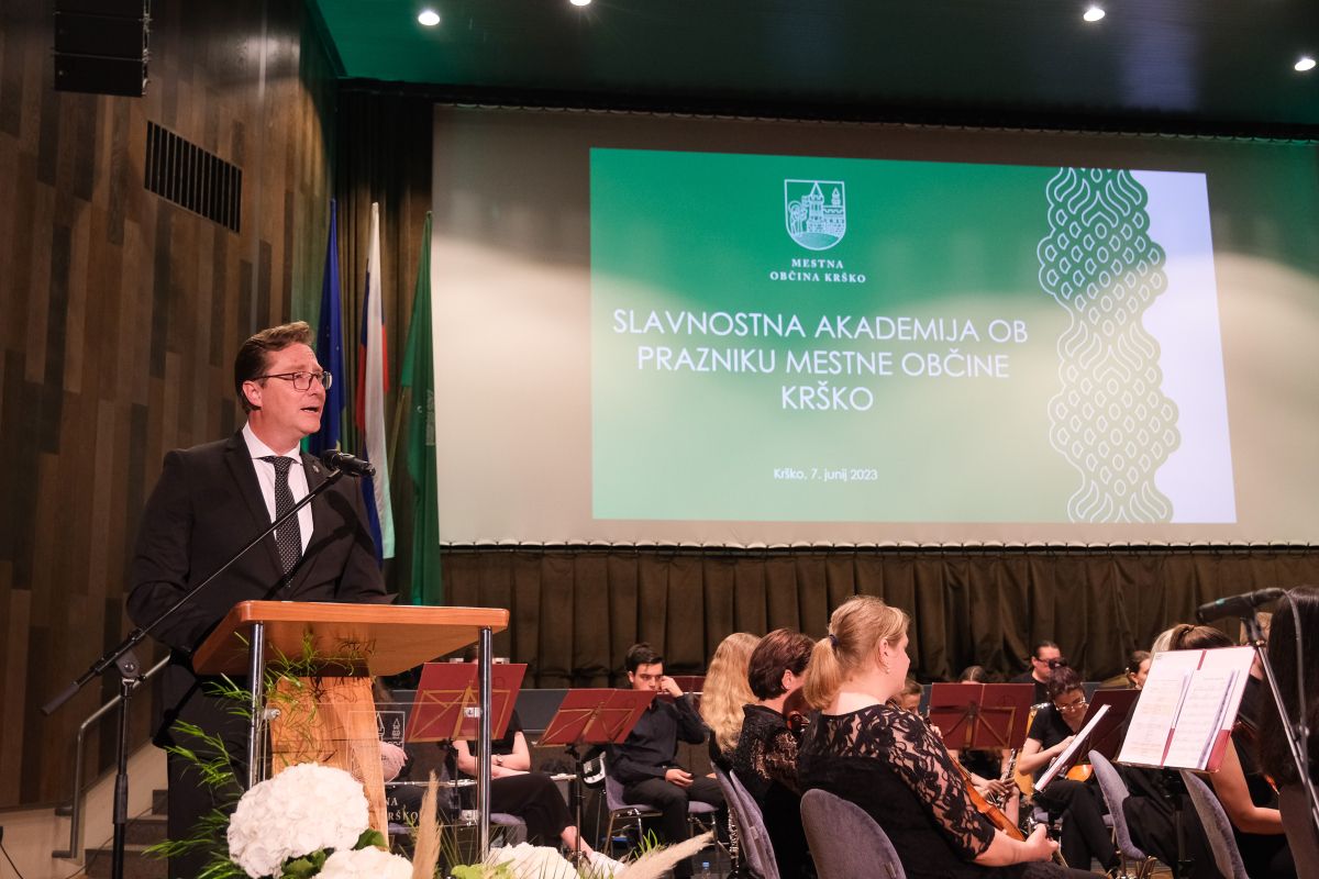 Kot so zapisali v sporočilu za javnost krške občine, je župan Janez Kerin v uvodnem slavnostnem nagovoru poudaril večje pridobitve preteklega leta in izpostavil usmerjenost v bodoči razvoj in napredek mestne občine Krško: »Usmeritev in hitrost občinskega razvoja sta temeljnega pomena, saj neposredno vplivata na kakovost našega življenja. Kako dobro so urejene naše ceste, kakšna je kakovost pitne vode, kakšne so možnosti za rekreacijo in šport, kako dostopne so storitve zdravstvenega varstva in izobraževanja, kakšne so lokalne gospodarske možnosti, priložnosti in spodbude, kako je poskrbljeno za mlade, kmete, mestna, krajevna in vaška središča, kako skrbimo za starejše, - to so le nekateri izmed vidikov občinskega razvoja, ki neposredno vplivajo na vse nas.« Dodal je, da razvoj ustvarja prijetno okolje, ki spodbuja pripadnost kraju, krepi socialne vezi in izboljšuje posameznikov kakovost življenja: »Poudariti moram tudi pomen participacije in vključevanja vseh vas v občinski razvoj. Vsak posameznik ima pravico in dolžnost izraziti svoje mnenje ter sodelovati pri odločanju o zadevah, ki vplivajo na našo skupnost. Le tako lahko dosežemo pravičnost, enakost in trajnostni razvoj, ki je usklajen s potrebami vseh prebivalk in prebivalcev«. Dodal je, da je obiskal že skoraj vse krajevne skupnosti in mestni četrti, ter nadaljeval: »Prizadevam si, da bo razvoj občine skladen s potrebami njenih posameznih delov, da bomo poskrbeli za vse predele naše občine. Da nikogar ne bomo pustili zadaj. Le skupaj lahko namreč ustvarimo okolje, kjer se vsi počutimo enako pomembni in slišani, pa tudi enako razviti.«