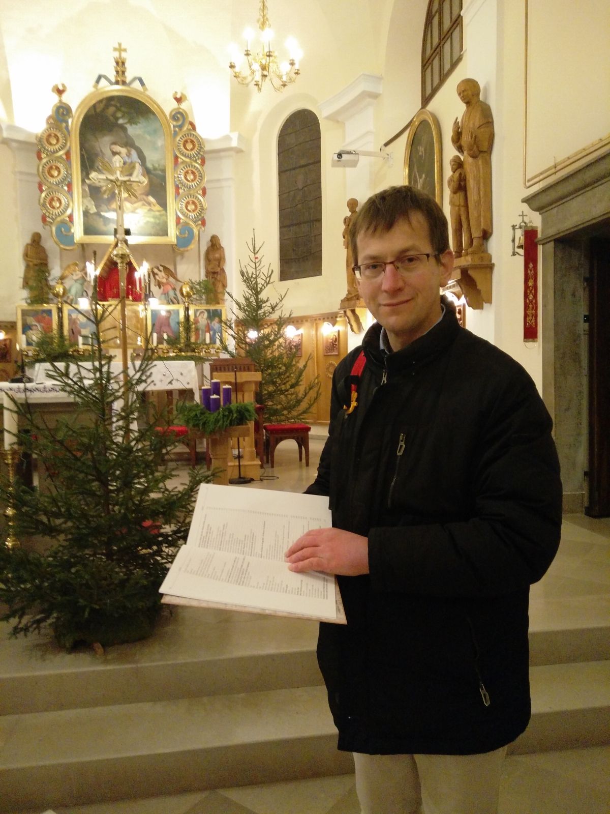 Po čudoviti razstavi je Blaž par popeljal po čudovito božično okrašenem mestecu, ki so ga krasile smrečice in drugo okrasje. »Prijetno vzdušje je vladalo na uličicah. Blaž naju je popeljal tudi do župnijske cerkve v Sodražici, jo nama razkazal in opisal njeno zgodovino ter nama podaril Sveto pismo,« slikovito razlaga Kamran.