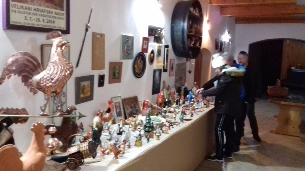 Izba, v kateri so okušali vino, je bila, tako kot muzej, okrašena s stoterimi petelini in čudovito restavrirana. Janez je Colinu in Diane predstavil podrobno pridelavo cvička, razložil pravila za njegovo pripravo in ponudil v degustacijo pet vrst vin. »Vsako izmed njih je bilo po svoje drugačno, a odlično,« pove Colin. »Janez je še razložil, da se cviček najbolje poda k mastni hrani. K raznim vrstam domačih klobas, pečenki pa tudi k zelenjavi in sirom. Diane so postregli penino, ki so jo odprli z mečem. Vau, bila je zelo čudovita izkušnja,« pripoveduje Colin. »Nato je na obisk prišlo še več Janezovih prijateljev, ki so mu prinesli tudi darilo. Seveda je bila to slika petelina. (smeh) Počutila sva se zelo sprejeta in prijetno nama je bilo v družbi domačinov,« še poudari.