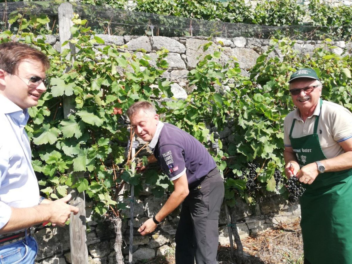 Po ogledu kleti so se grajski botri odpravili v grajski vinograd in obrali grozdje s 500 trt modre frankinje. Začetek trgatve, ki so se je udeležili številni grajski botri in podporniki, so naznanili s tem, da so najprej potrgali grozdje z žametne črnine, ki raste iz cepiča trte z mariborskega Lenta. To častno obiranje grozdja so opravili direktorica KŠTM Sevnica Mojca Pernovšek, podžupan občine Sevnica Janez Kukec in predsednik krajevne skupnosti Studenec Janoš Janc.