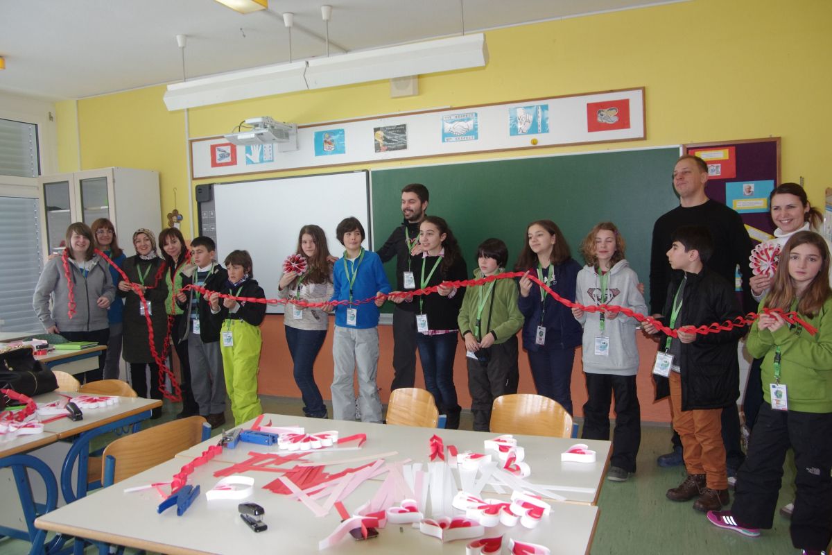 Gostje so prve dni spoznali šolo, delali so v delavnicah.V likovni delavnici so si poslikali vsak svojo majčko, v športni so plezali po plezalni steni, v oblikovalni izdelovali okraske za Valentinov ples, v kuharski pa so v modele odtisnili in spekli male medene škofjeloske kruhke v obliki srčka ali sončka. Modele jim je za to priložnost izrezljala Petra Plestenjak iz Škofje Loke. Na šolo so prišli tudi veterani, člani Folklornega društva Kres iz Novega mesta, ki so predstavili slovenske plese in otroke tudi naučili kakih korakov, ker pa imamo ravno te dni v naših krajih obilico snega, so tekmovali še v izdelavi snežakov. Učitelji so imeli sestanek s predstavnico iz Cmepiusa, ki je nacionalna agencija za evropske mednarodne projekte.