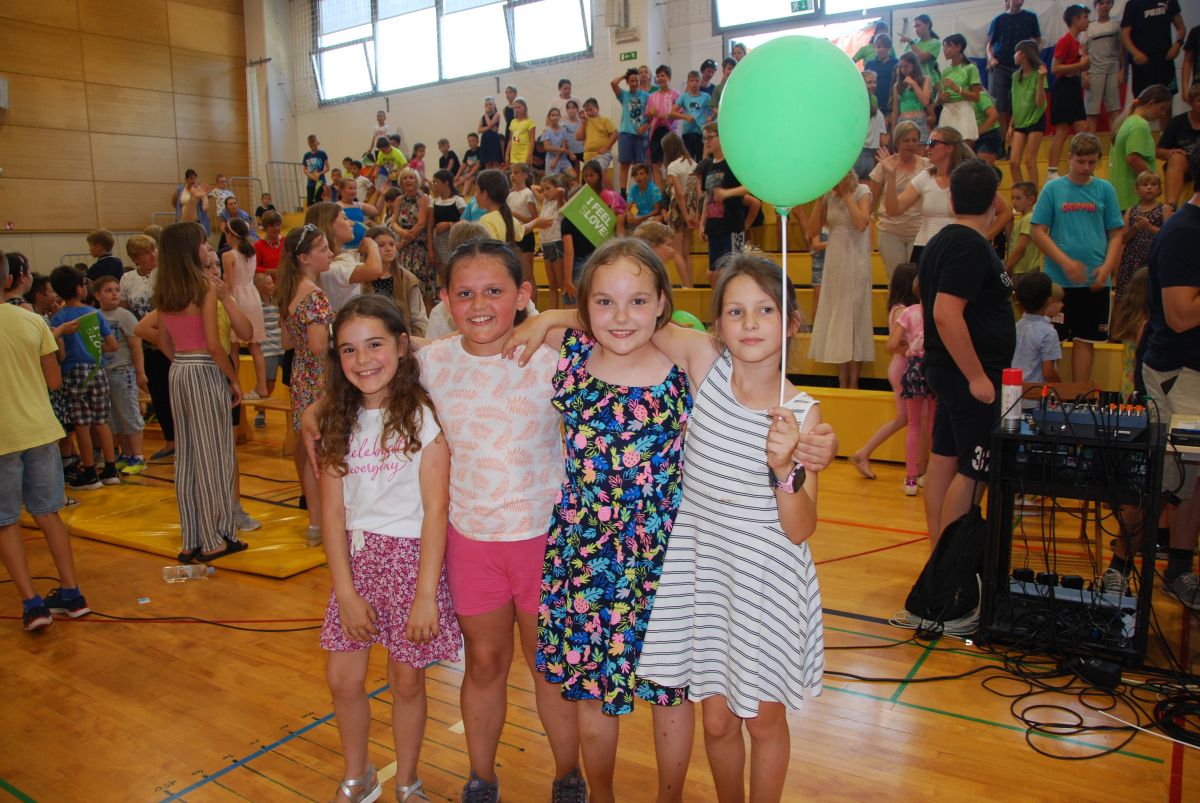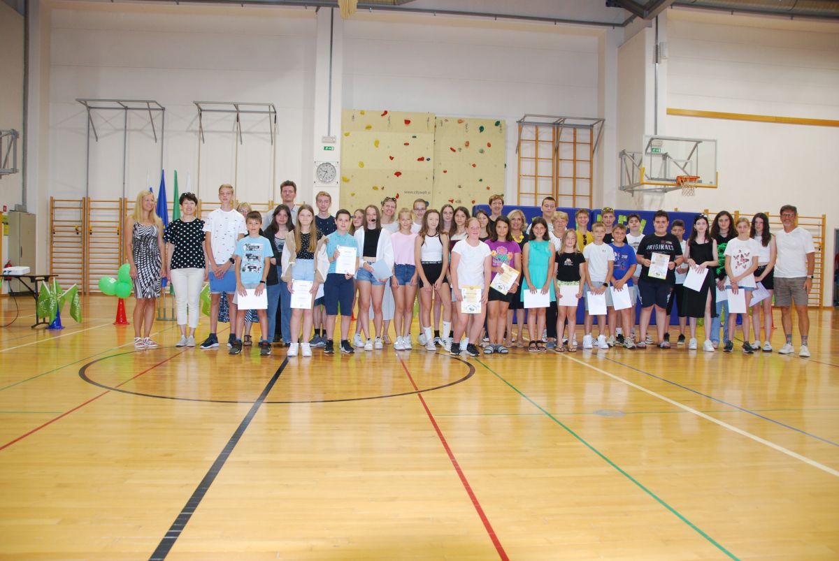 Nadaljevali smo v veliki telovadnici šole z obeležitvijo prihajajočega še enega rojstnega dne, to je dan državnosti, ko praznuje naša domovina – Slovenija. S sloganom I feel Slovenia smo zaokrožili prostor. Nagovorila nas je tudi ravnateljica šole, gospa Valentina Gerjevič. Podelili pa smo tudi vsa zlata in srebrna odličja vsem našim zares najuspešnejšim učencem šole. Kako smo ponosni nanje! Bravo, učenci, bravo, mentorice in mentorji!