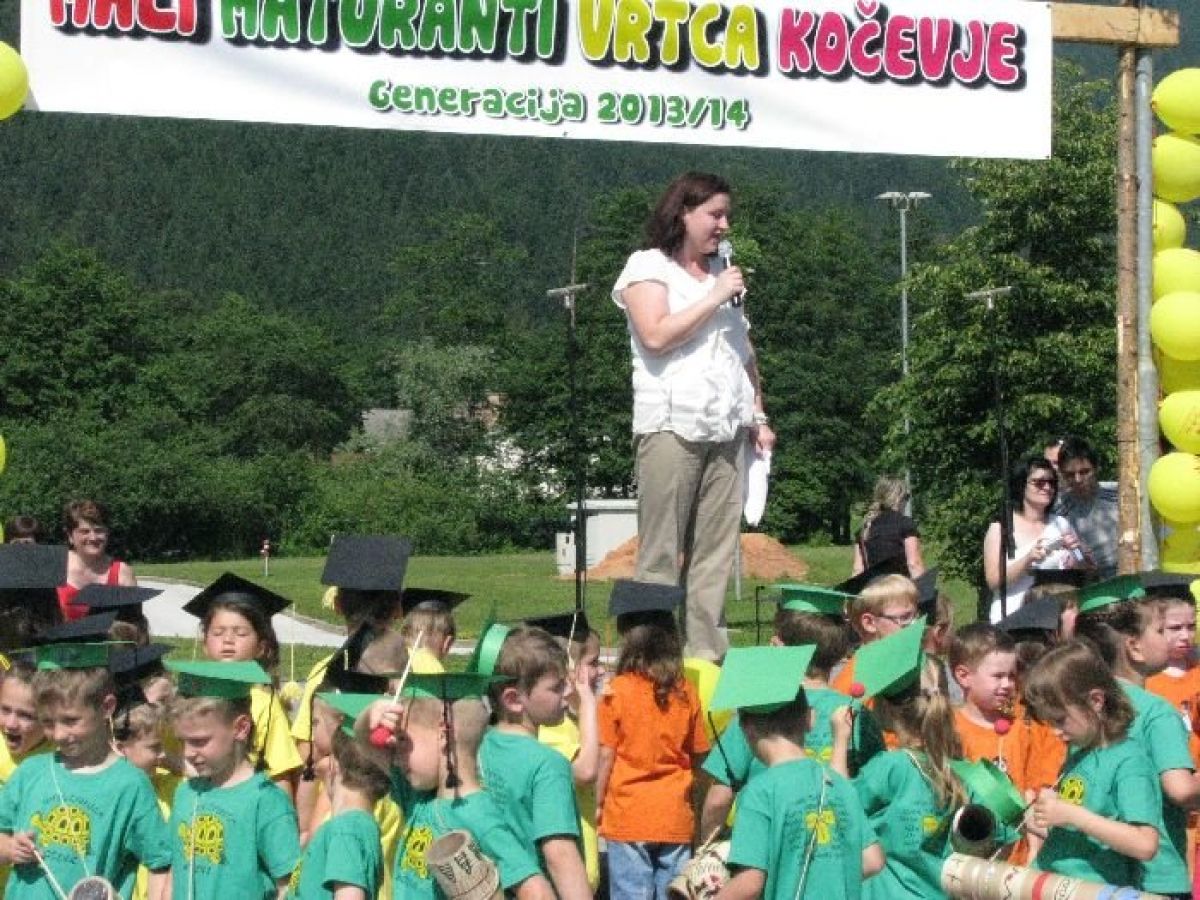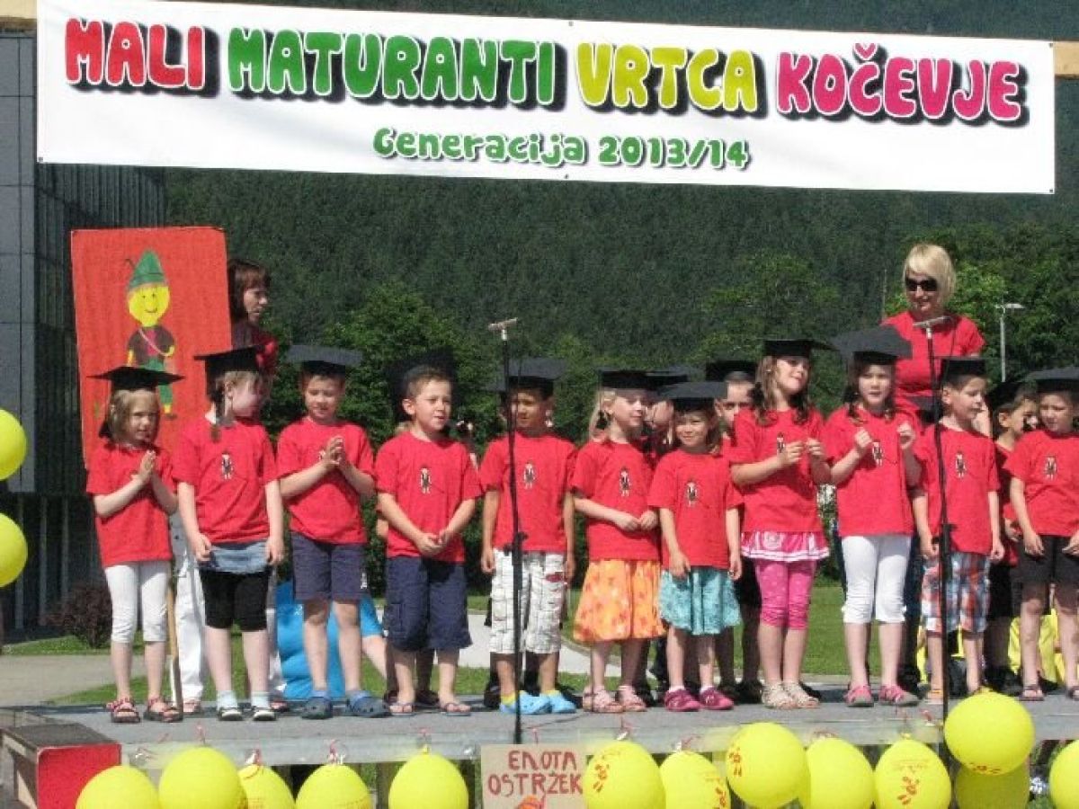 Otroci Vrtca Kočevje, ki bodo letos jeseni prvič sedli v šolske klopi, so prva generacija kočevskih predšolskih otrok, ki so zapeli »himno« kočevskih malih maturantov. Na prireditvi, ki jo je pripravil Vrtec Kočevje včeraj pred športno dvorano v Kočevju, s katero so uradno obeležili odhod otrok generacije 2013/2014 iz vrtca, so potem, ko so se otroci iz vseh 7 enot kočevskega vrtca predstavili z eno od otroških pesmic, otroci še skupaj zapeli pesem Mali maturant.
