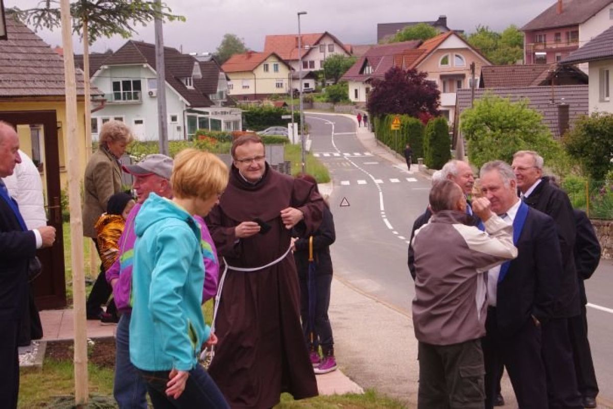 Novo kapelico je pri maši na prostem, kar ob znamenju, v družbi patra novomeškega frančiškanskega samostana Krizostoma Komarja blagoslovil šmihelski župnik g. Igor Stepan. Kot pravi, so vse kapelice v župniji lepo obnovljene in bodo ljudem še naprej duhovna opora v življenju. Mašo, ki so jo posvetili tako Žagarjevim pokojnim staršem kot vsem pokojnim vernikom z Broda ter za blagoslov polj, ki jih tudi tu še nekateri obdelujejo, je obogatilo petje pevske zasedbe Tonakord. Prizaneslo je celo muhasto deževno vreme.