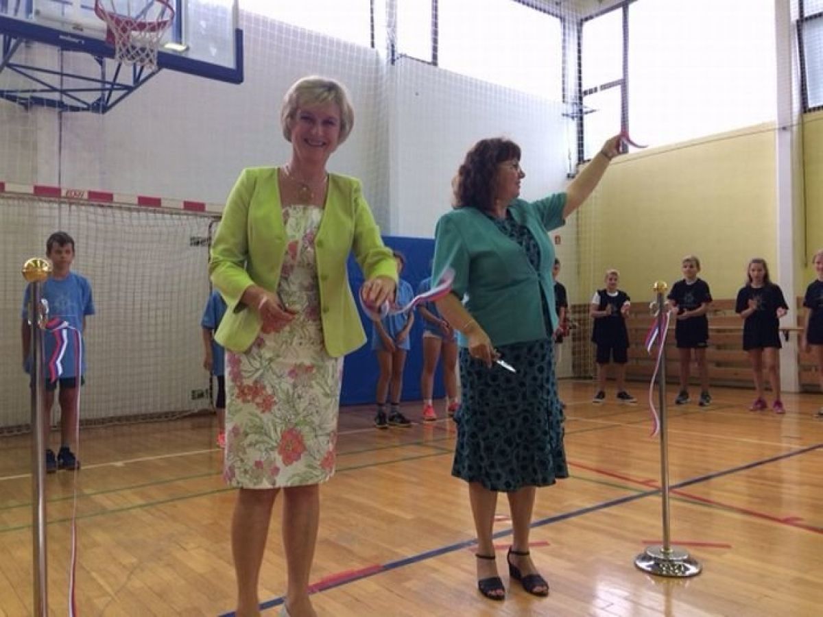 Na OŠ Šmarjeta so novo šolsko leto začeli z lepim dogodkom - odprtjem prenovljene atletske steze z nogometnim igriščem. Zaradi deževnega vremena so dogodek prestavili v šolo, trak nove pridobitve pa sta prerezali ravnateljica šole Nevenka Lahne in šmarješka županja Bernardka Krnc.