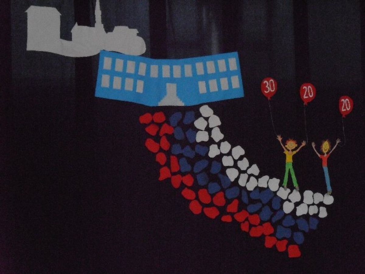 V četrtek, 21. junija, smo na Osnovni šoli Trebnje pripravili zaključno prireditev, na kateri smo počastili kar tri pomembne dogodke: dan državnosti, 20. obletnico, odkar so bile Trebnjemu dodeljene mestne pravice, pred 30. leti pa je naša modra šola prvič odprla vrata učencem od 1. do 8. razreda, 4. februarja leta 1982 je namreč stekel pouk v novih prostorih, čeprav je bila stavba zgrajena že jeseni leta 1981.