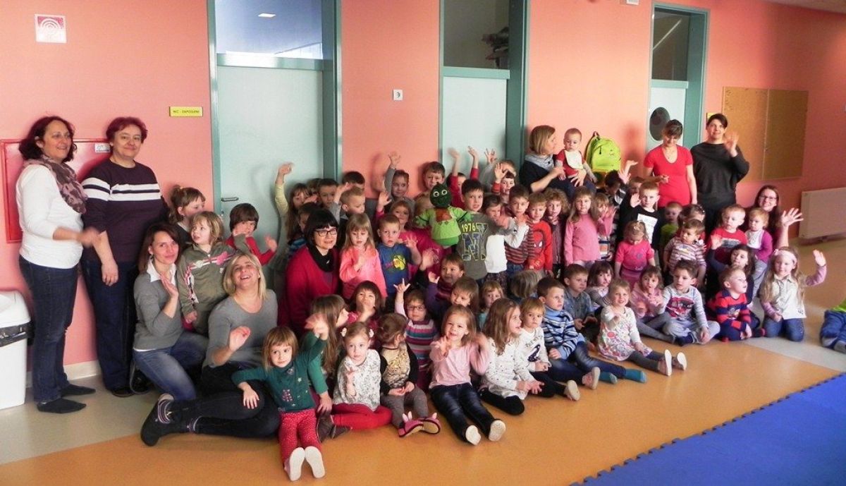V sončnem četrtku, 17. marca so se otroci skupaj z vzgojiteljicami in Zmajčkom Jurčkom odpeljali na Bizeljsko, kjer so jih že veselo pričakovali otroci z vzgojiteljicami. Otroci iz Kapel so pripravili pevski program.
