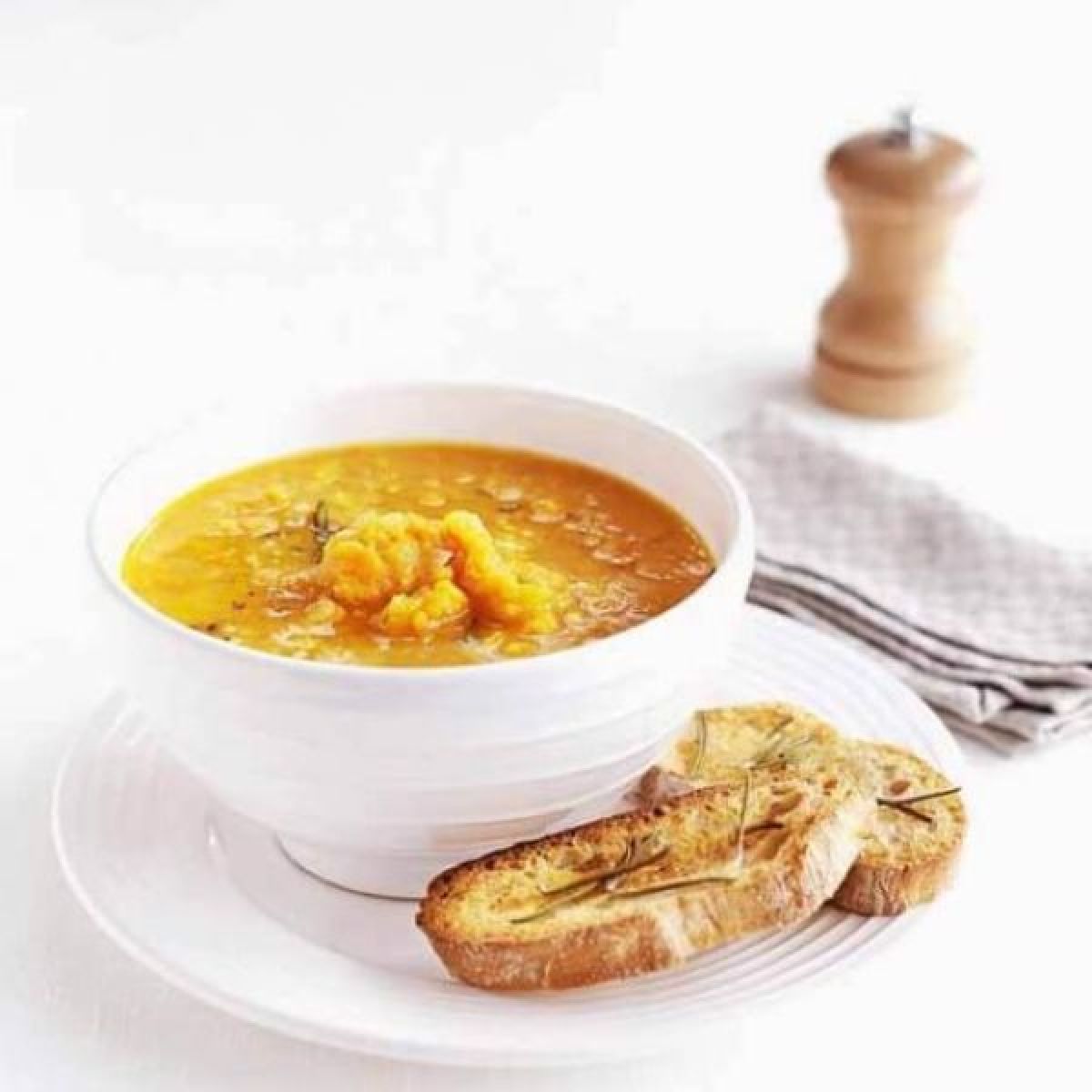 Sobotni recept: Juha iz sladkega krompirja s popečenimi česnovimi kruhki