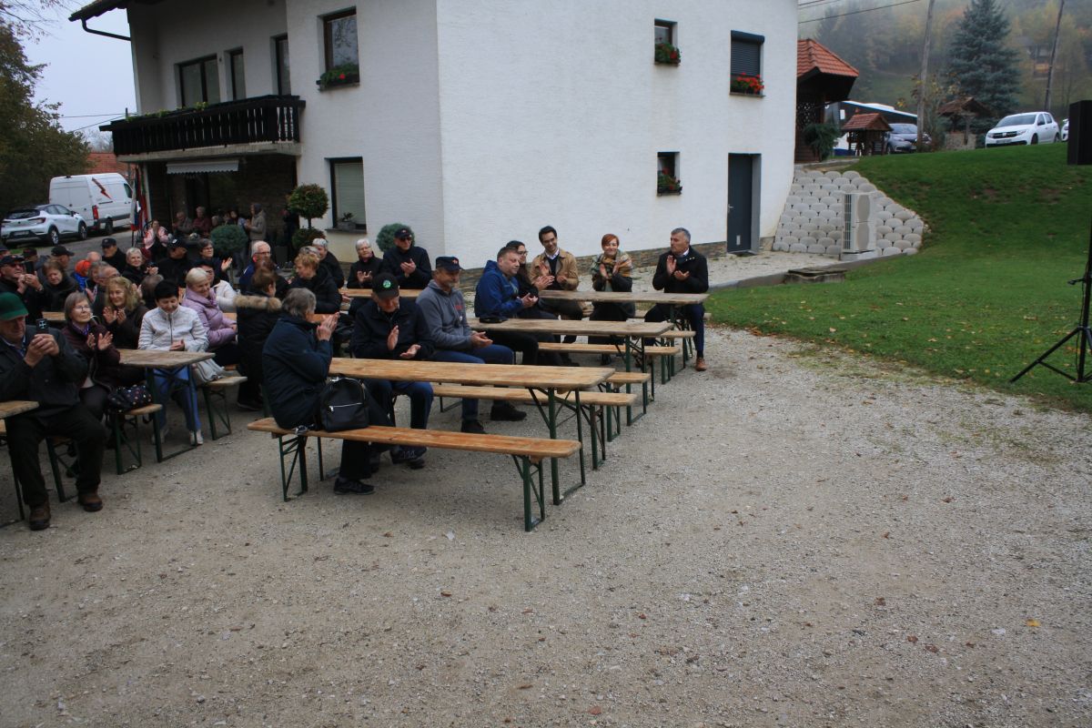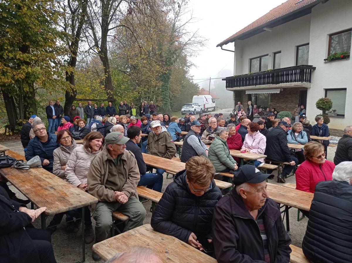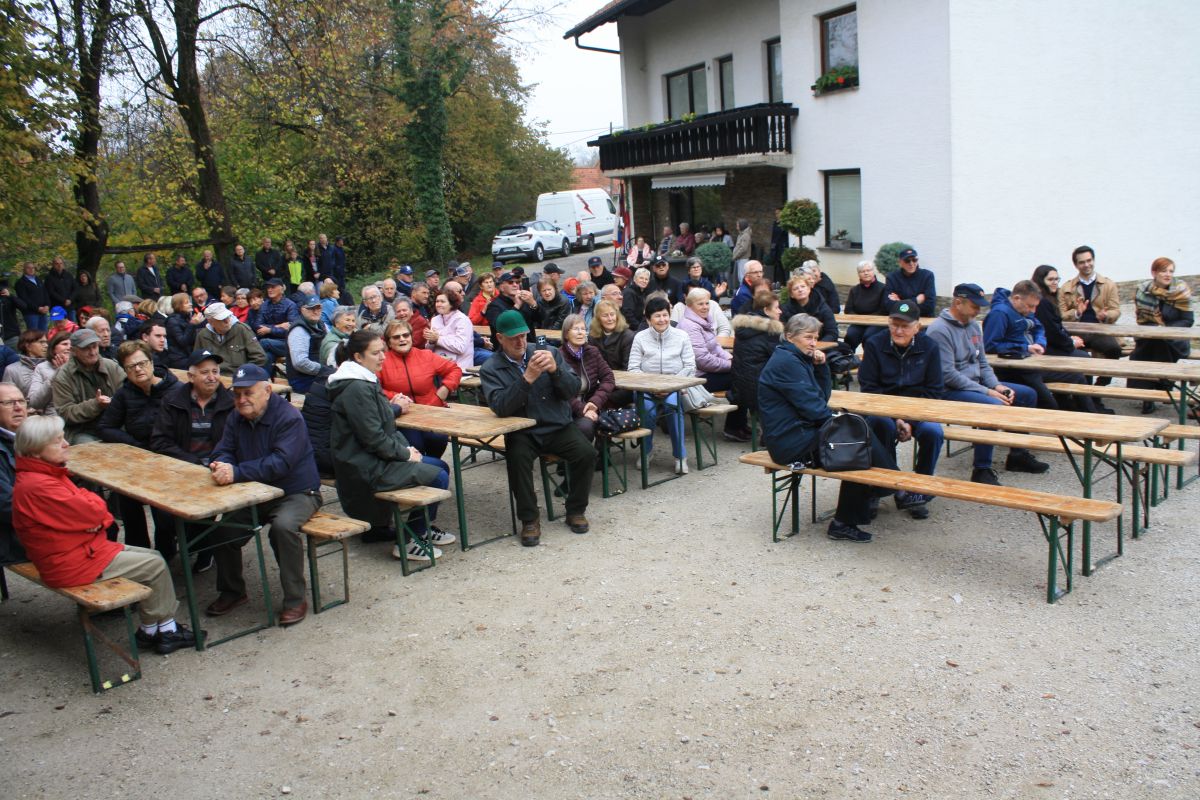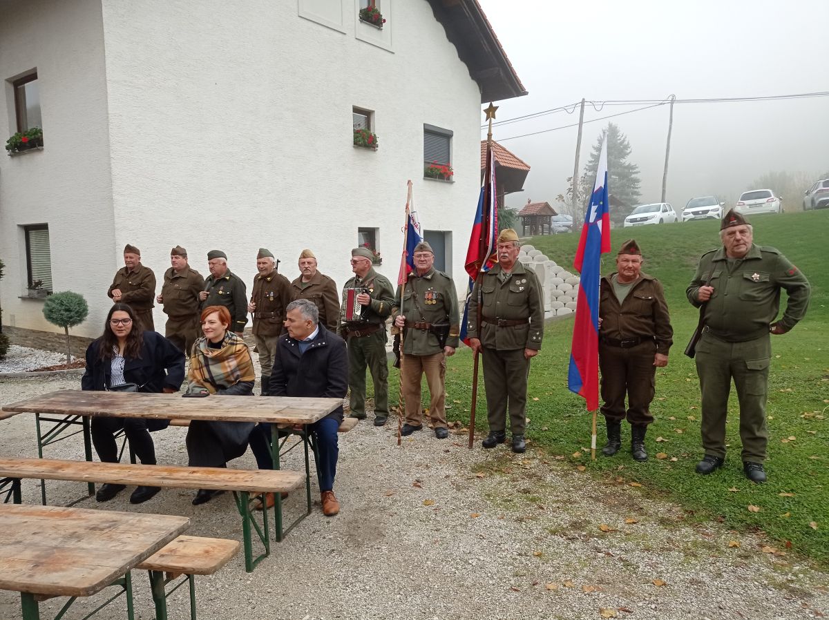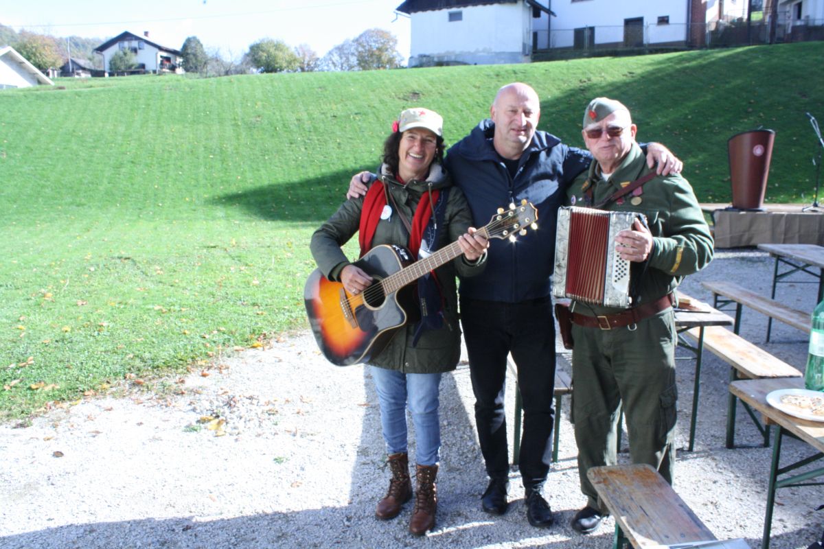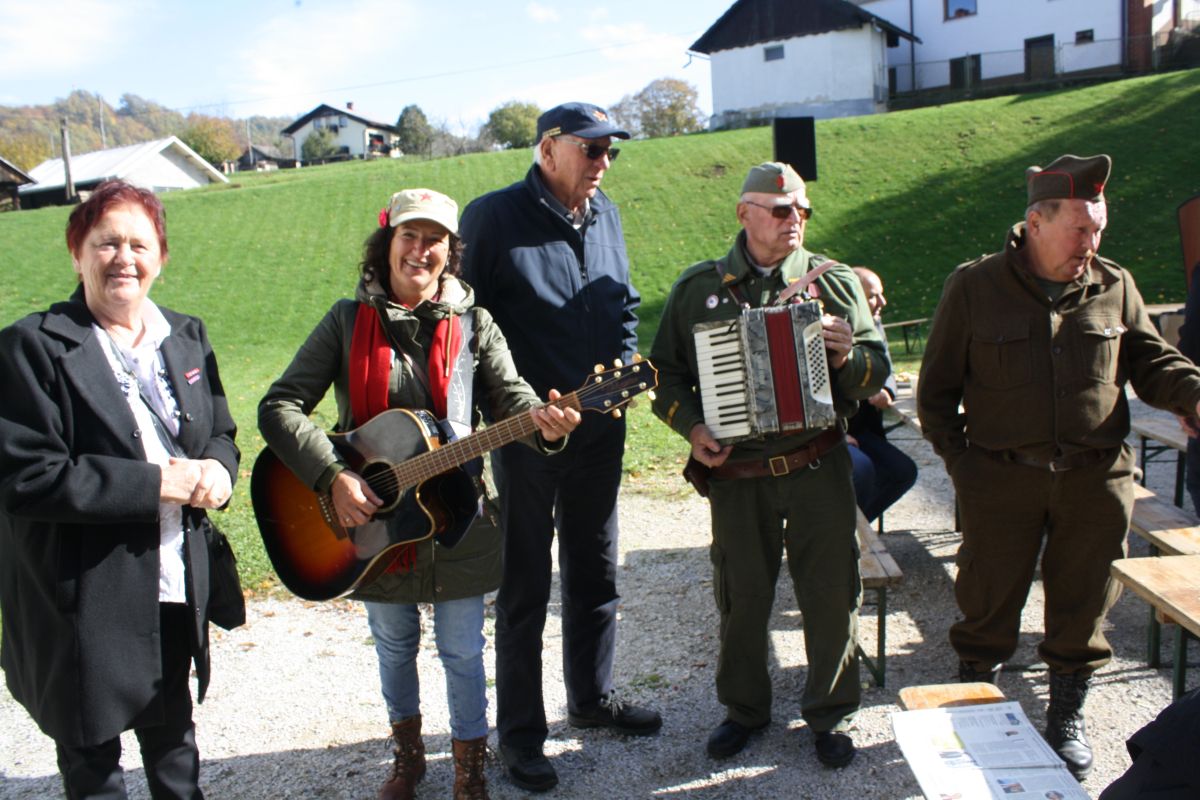 Včeraj na Oštrcu so, potem ko so se talcem poklonili pri spomeniku, svečanost nadaljevali na dvorišču pri Sintičevih.