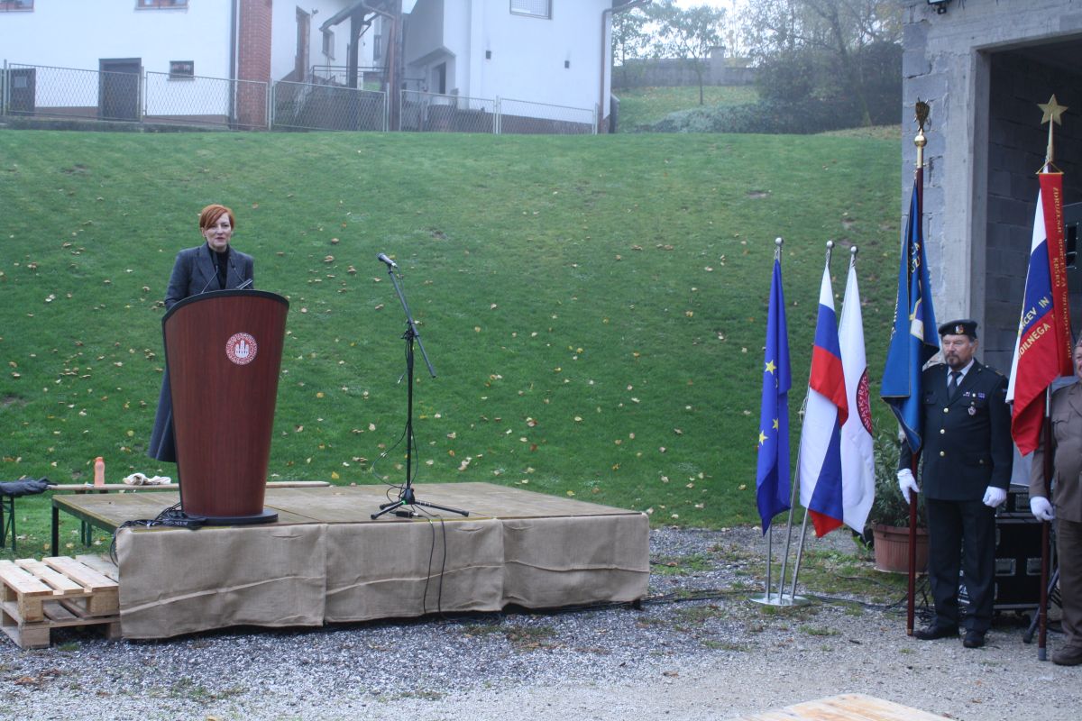 Slavnostna govornica ministrica za kulturo Asta Vrečko je izrekla pohvalo temu, da so domačini na Oštrcu dali na razpolago svoje dvorišče za javno prireditev in da so sodelovali pri izvedbi dogodka.