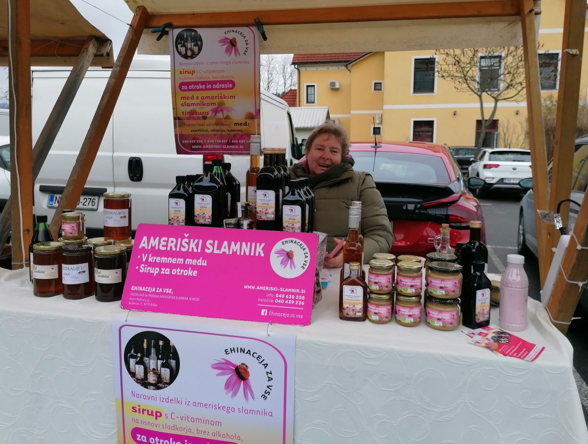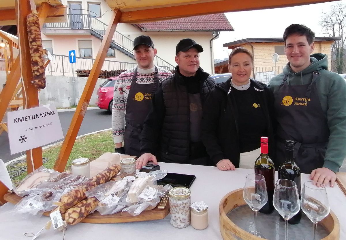 Kmetija Mehak je ponujala svoje odlične ekološke mesne izdelke, kmetija Škrjanec sire, ekološka kmetija Mlakar moko, na voljo je bil nakit, ročno izdelani okraski domačinke Anke Jurečič, pa leseni unikatni izdelki Franca Moleka in Jožeta Retlja.