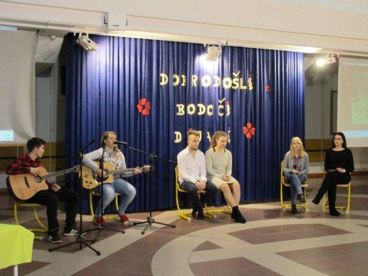 Ekonomska in trgovska šola Brežice je v sklopu letošnjih informativnih dnevov predstavila svoje izobraževalne programe na srednješolski in višješolski stopnji. V petek je šolo obiskalo okoli 70 bodočih dijakov s svojimi starši in spremljevalci, ki so bili navdušeni nad toplim sprejemom v šolski avli, kjer jih je pričakal lep glasbeno-plesni kulturni program dijakov šole in sladka pogostitev.