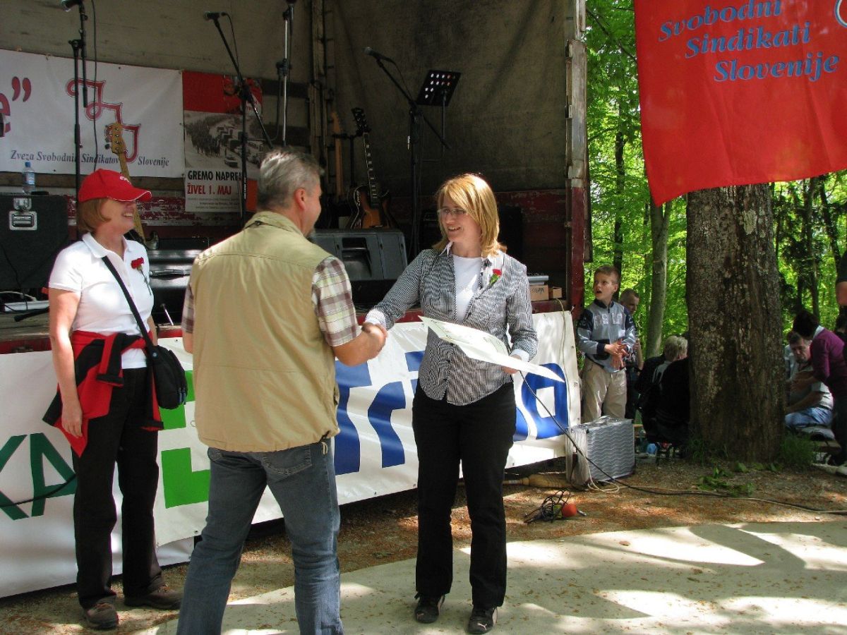 Na Debencu je slavnostna govornica skupaj s predstavnikoma ZSSS za Dolenjsko, Belo Krajino in Posavje Majdo Marolt in Branetom Šeničarjem podelila priznanja sindikalnim zaupnikom. Te so prejeli: članica Sindikata kemične, nekovinske in gumarske industrije Slovenije in tajnica sindikata KNG Krka Sabina Gusič, Vlasta Šmajdek iz Sindikata državnih organov Slovenije in predsednica sindikata Okrožnega in okrajnega sodišča Novo mesto, Jožef Jerman iz Sindikata državnih organov Slovenije in predsednik sindikata UE Črnomelj, Jože Kovačič iz Sindikata kovinske in elektroindustrije Slovenije in predsednik sindikata Resistec Krško ter Karel Hrvatič, član Sindikata komunale, varovanja in poslovanja z nepremičninami Slovenije in predsednik sindikata Kostak Krško.
