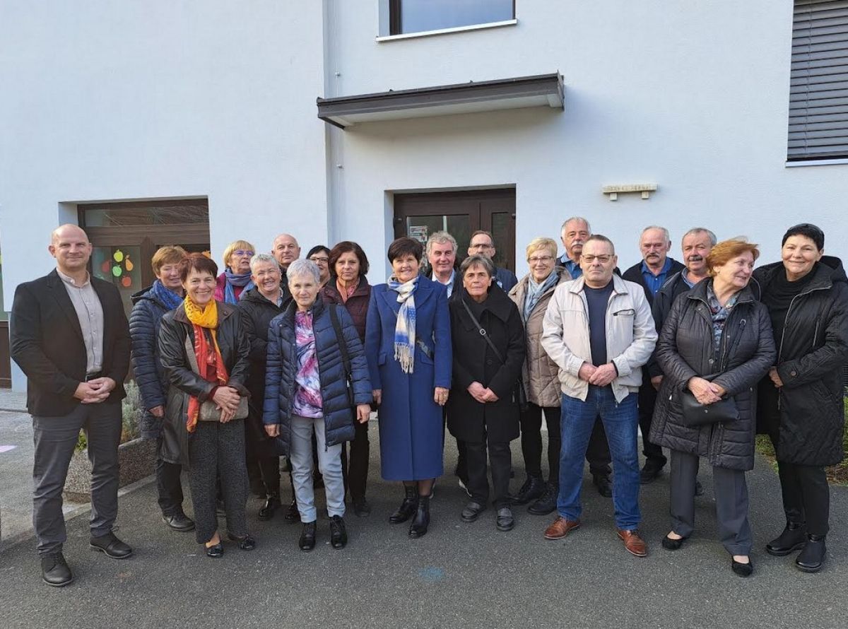 Druženje smo začeli v OŠ Stopiče, kjer nas je prijazno in gostoljubno sprejel ravnatelj, mag. Robert Rogelj. Popeljal nas je po šoli in nam razkazal prenovljene šolske prostore, ki so v petdesetih letih precej spremenili svojo podobo.