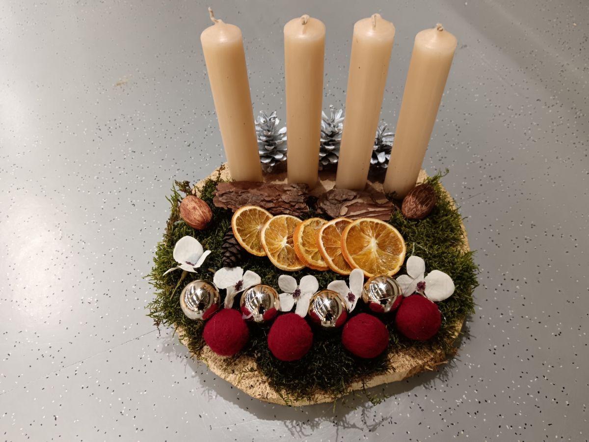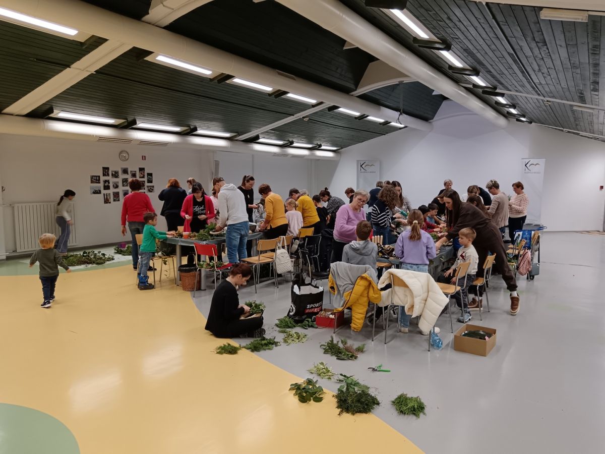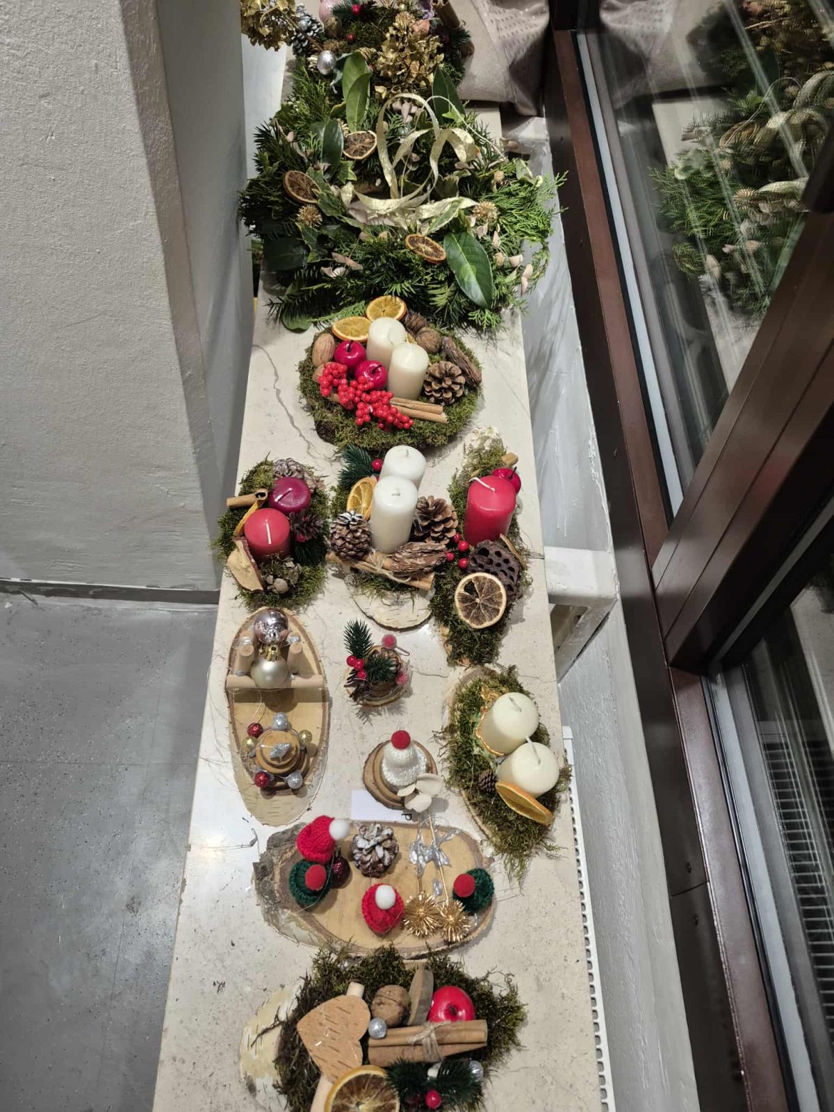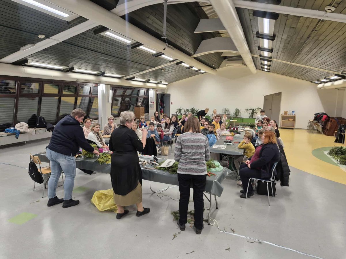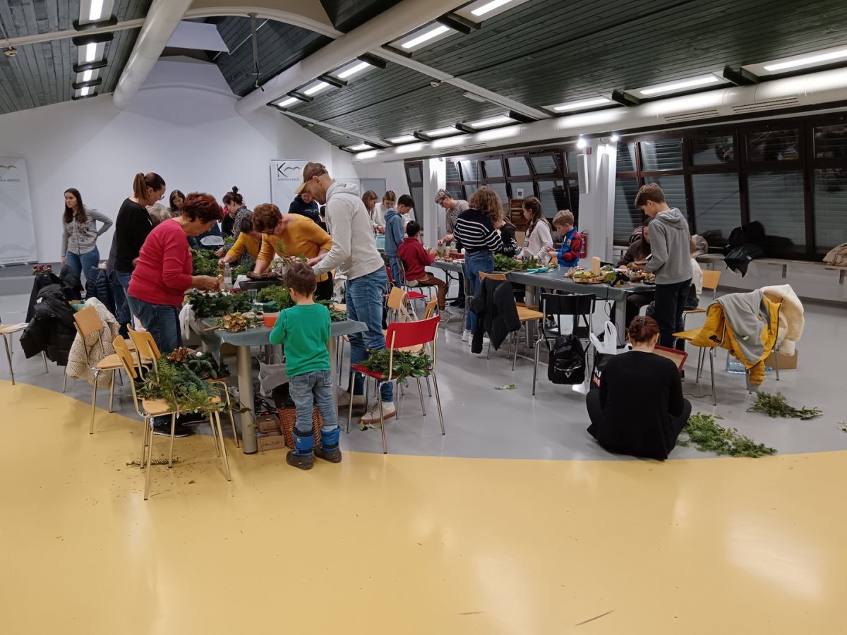 K skupnemu ustvarjanju adventnih dekoracij smo vabili tudi mi. Delavnica se je odvijala v Dvorani Savice Zorko in je k druženju privabila ustvarjalce različnih generacij. Ob strokovni pomoči gospe Alenke smo začeli z ustvarjanjem.