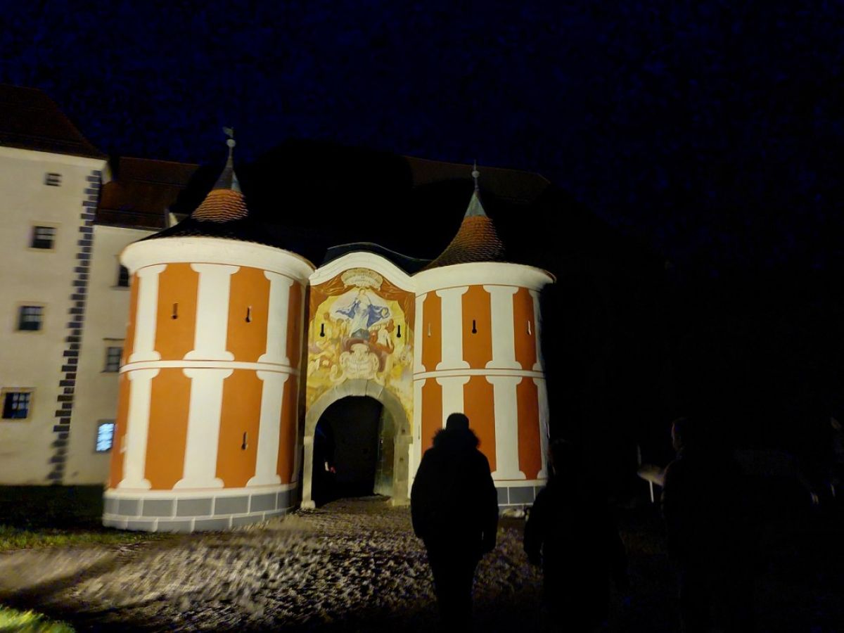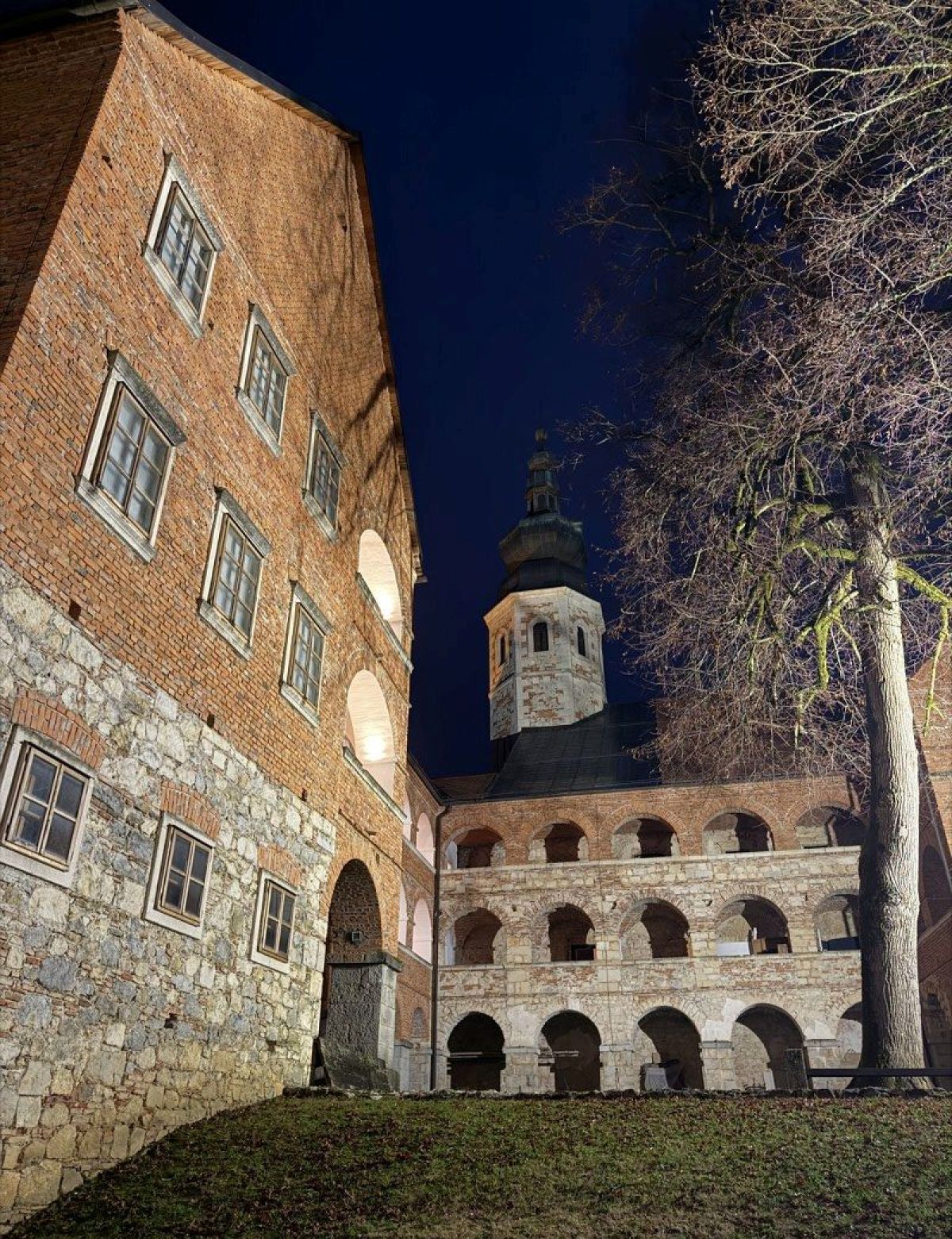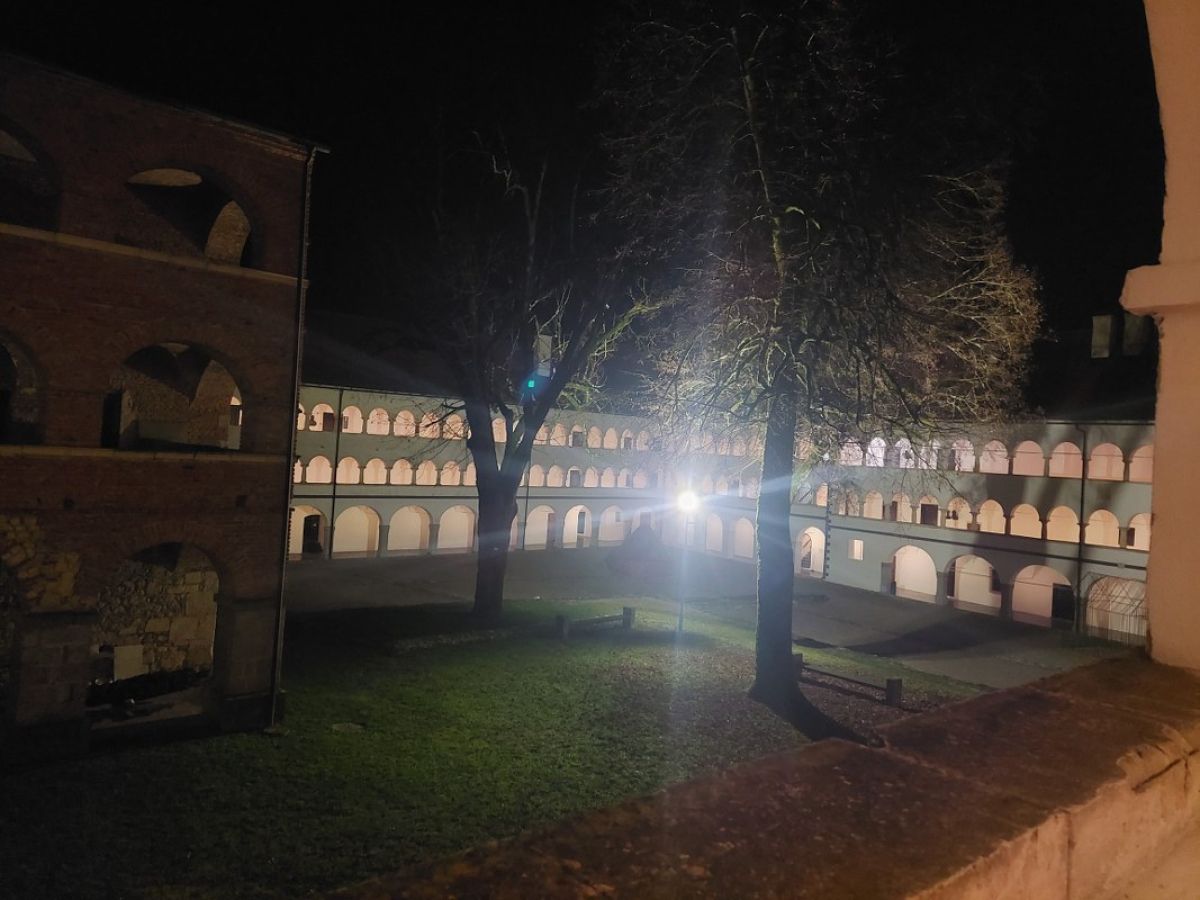 30 članov in članic vseh starosti je na notranjem dvorišču (ki je, mimogrede, največje arkadno dvorišče v Srednji Evropi) nekdanjega cistercijanskega samostana pričakala prijazna kustosinja Sabina Zupan, ki nas je popeljala med zidovi zgradbe, ki nosi na tisoče zgodb iz različnih zgodovinskih obdobij. Samostan Marijin Studenec, v katerem so delovali cistercijani, je leta 1234 ustanovil koroški vojvoda Bernard Spanheimski, in je znan po bivši samostanski cerkvi in najobsežnejših arkadah izmed vseh stavb v Sloveniji, tudi grajskih.