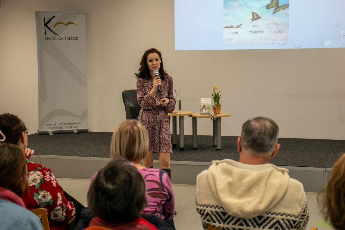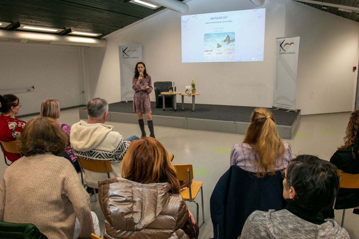 Metuljev let v dvorani brežiške knjižnice s Carmen L. Oven