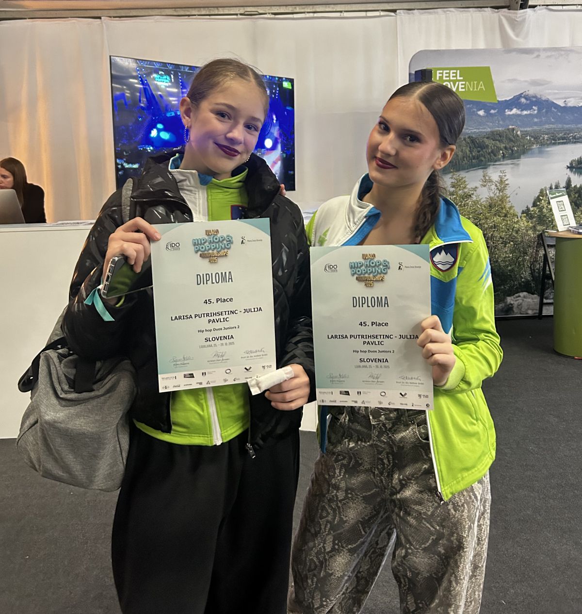 V soboto, 25. oktobra, sta v konkurenci 132 hip hop parov v kategoriji starejših mladincev nastopili Julija Pavlič in Larisa Putrih Šetinc. Z zanesljivim in energičnim nastopom sta se prebili v naslednji krog ter osvojili 45. mesto, le eno mesto jima je zmanjkalo do osmine finala. Obe plesalki sta v zadnjem obdobju pokazali velik napredek in zrelejši pristop k nastopom, kar se je odrazilo tudi na tako zahtevnem tekmovanju.