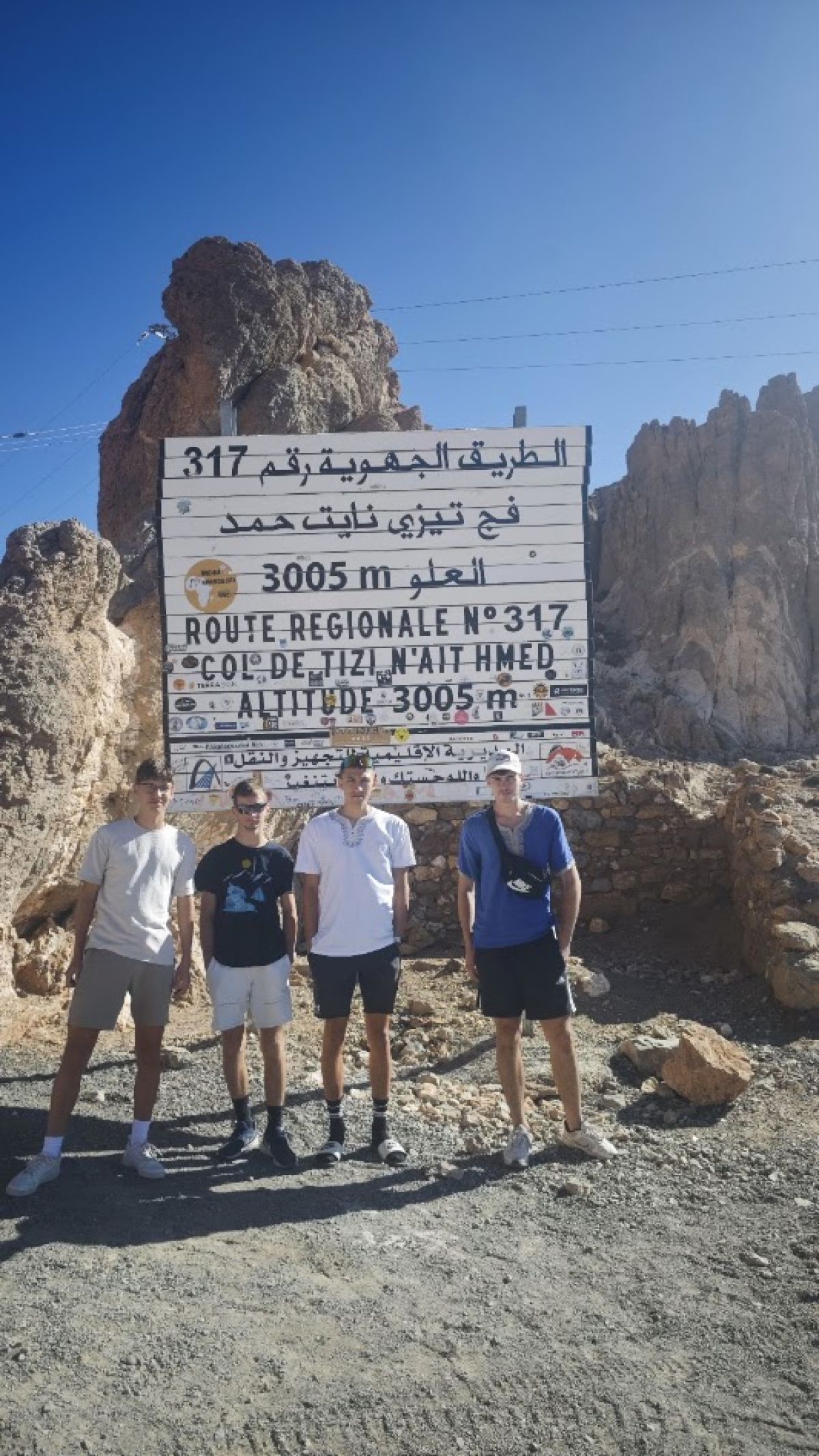 Luka: Odprava je bila naporna, nepredvidljiva in izjemna izkušnja. Ko smo jo načrtovali v šoli, si res nismo mislili, da bo tako zahtevna, navsezadnje smo se morali med samo odpravo dogovarjati o planih za naslednji dan, predvsem zato ker je bila pitna voda tako zelo omejena. Na koncu nam je uspelo, kar smo si zadali: opraviti srebrno MEPI odpravo in se povzpeti na tretji najvišji vrh Maroka, Jebel M’goun. Prvi dan je bil lahek, dokler nismo zašli in obtičali med slapovi. Naprej ni šlo, tako da smo se morali obrniti in iti nazaj po rečni strugi do začrtane poti. To nam je vzelo ogromno časa in na zadnjo točko prvega dneva smo prišli v čisti temi. Drugi dan je bil najzahtevnejši. Čakal nas je vzpon na M’goun. Velik problem nista predstavljala le višinska razlika in redkejši kisik, ampak spet predvsem zelo omejena količina vode. Okoli tretje ure popoldan smo prišli do vrha in odleglo nam je, saj je bil to glavni cilj naše odprave. Tretji dan je bil spet zahteven z vidika vode. Nekaj kilometrov smo po suhem terenu in soncu hodili z 1 litrom vode za vse štiri. Ko smo prišli do reke, so težave prenehale in do konca smo prišli zadovoljni, da smo odpravo naredili. Odpravo vidim kot neprecenljivo izkušnjo, ki mi bo ostala za celo življenje.