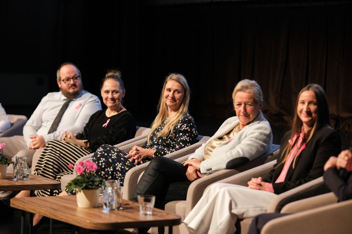 Osrednji del dogodka je predstavljala okrogla miza, ki jo je vodila psihologinja Petra Marinko in na kateri so pogumne sogovornice in sogovorniki z udeleženci delili svoje osebne zgodbe ter strokovne poglede na različne vidike življenja z diagnozo raka dojk.