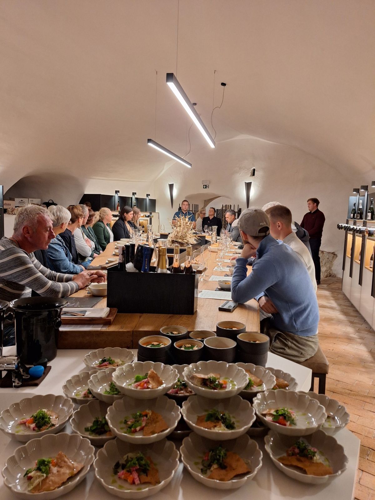 Obiskovalci so okušali naslednje kombinacije: Restavracija A3 je poleg hladno dimljene postrvi iz lastne proizvodnje (Akval d.o.o.) postregla - Vertovšek estate 'Rose' in poleg mariniranega fileja postrvi - Vina Huba Martinčič 'Blanc the Blanc'. Gostilna Repovž je k postrvini zloženki postregla - Domaine Slapšak 'Rose brut' in zraven postrvinega namaza - Vino Kozinc 'Sauvignon 2024'. Ribe so dobavili iz Ribogojstva Akval in Goričar. Restavracija in hotel Tri lučke je navdušila s tatarcem iz sulca, poleg katerega so kombinirali Isteničev 'Prestige ter dimljenega soma z Albiano 'Brut'. Ribe so dobavili v Ribogojstvu Goričar.