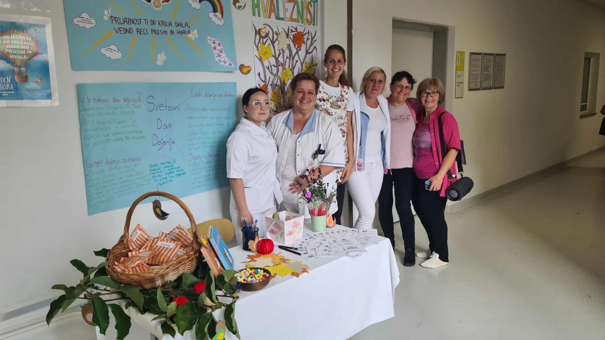 Teden smo zaključili s stojnicami na hodniku bolnišnice, kjer so se mimoidoči posladkali s piškoti, ki so jih spekli na oddelku. Obenem so na drevo hvaležnosti zapisali za kaj so hvaležni. Za čudovit zaključek so poskrbeli plesalci mladinske folklorne skupine Kres, ki so s svojim veseljem in plesom pričarali pravo praznično vzdušje.