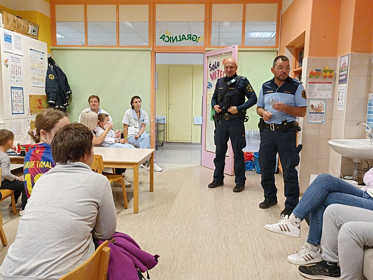 Policisti so otrokom na prijazen in zanimiv način predstavili svoje delo ter jih spomnili, kako pomembna je varnost doma, na cesti in v šoli. Največ navdušenja je požel prikaz, kako poteka vklenitev osebe – otroci so z velikim zanimanjem opazovali in zastavljali številna vprašanja.