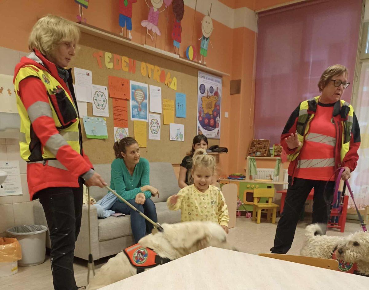 Še več nasmehov so pričarali reševalni kužki. S svojimi repki in igrivostjo so razveselili prav vse, njihove vodnice pa so razložile, kako poteka delo terapevtskih psov in kako ti štirinožni prijatelji pomagajo ljudem v različnih situacijah.