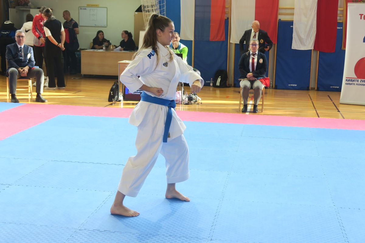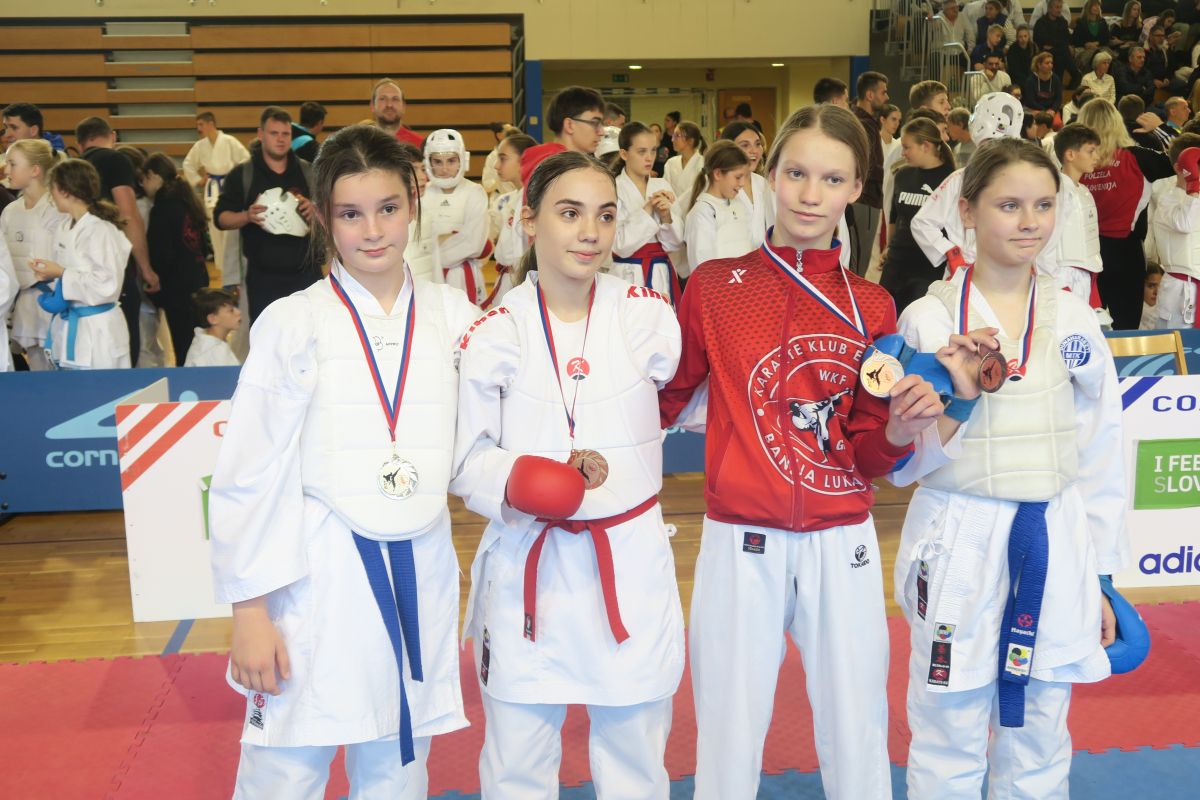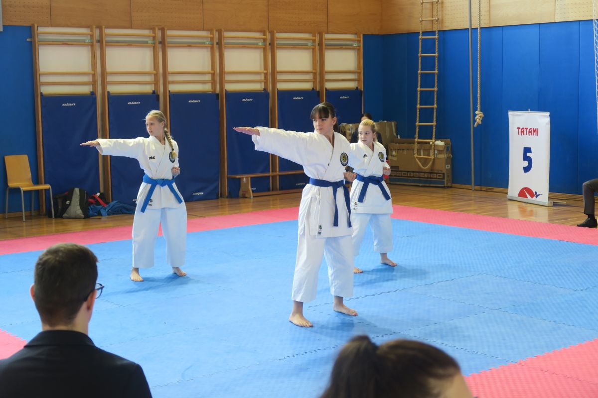 Santeja Ivnik je nastopila v kategoriji U18 kata mladinke in na koncu zasedla peto mesto. Medtem sta na enem izmed sosednjih tatamijev v kategoriji U12 kate deklice (kyu) nastopali Mia Čačić in Nuša Vodopivec, ki sta se po suverenih napredovanjih v zadnjem finalnem krogu pomerili med seboj. Zlato je osvojila Mia Čačić, srebro pa Nuša Vodopivec. Kasneje sta obe nastopili tudi v športnih borbah, kjer je Mia Čačić v kategoriji U12 kumite deklice +44 kg po dveh zmagah šele v finalu klonila proti nasprotnici iz Bosne in Hercegovine in zasedla odlično drugo mesto.