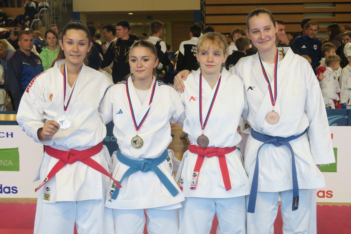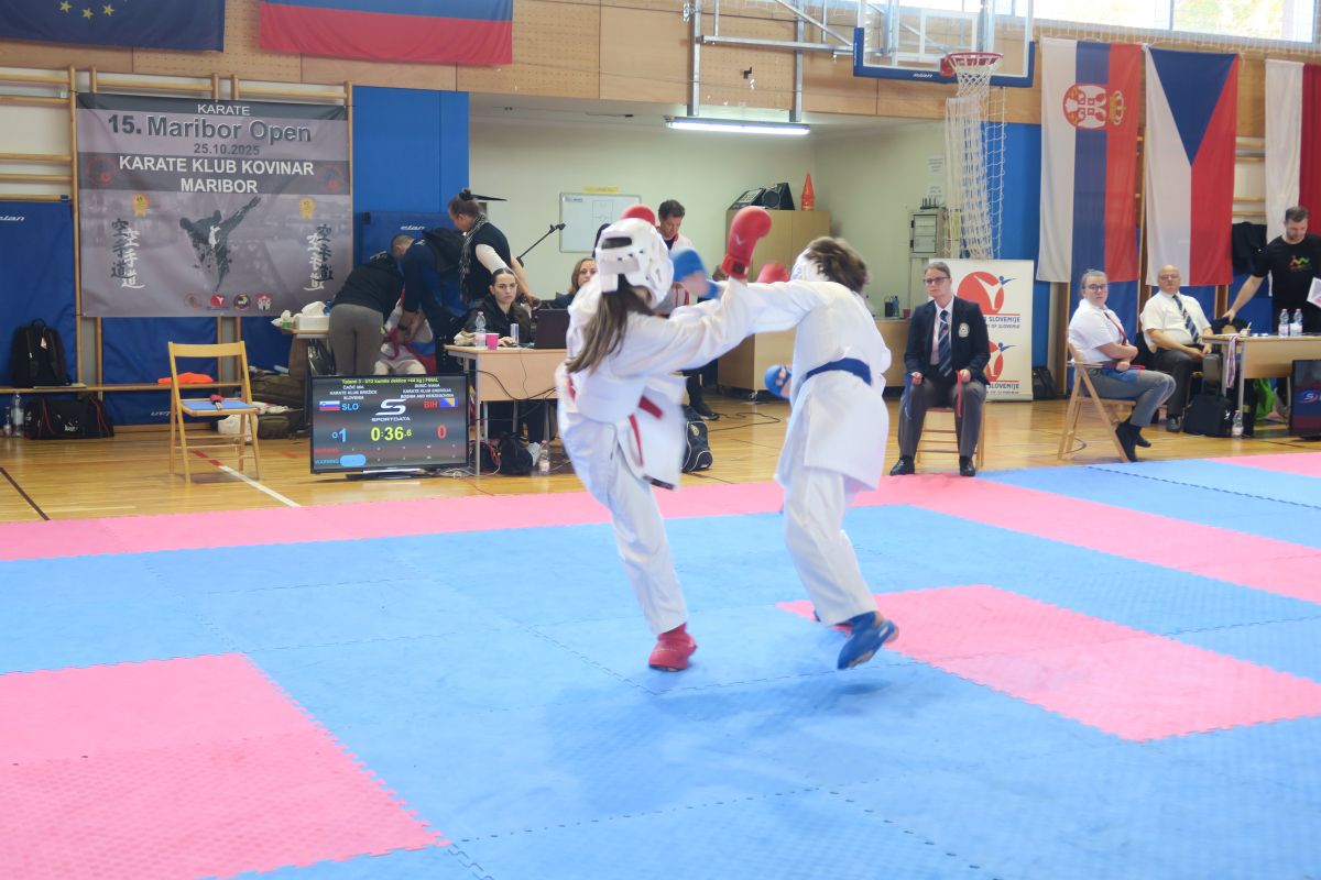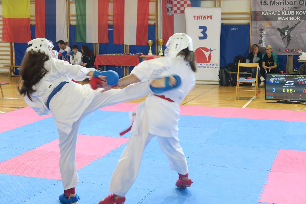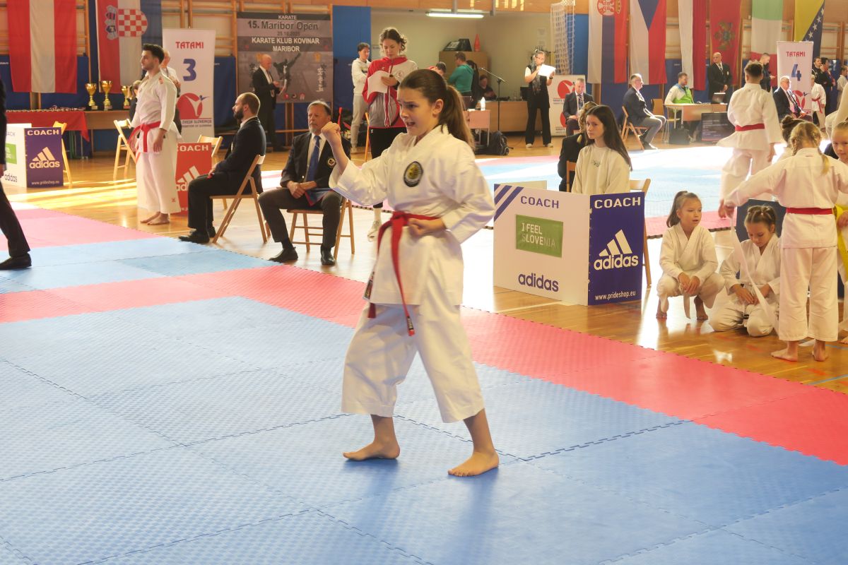 Santeja Ivnik je nastopila v kategoriji U18 kata mladinke in na koncu zasedla peto mesto. Medtem sta na enem izmed sosednjih tatamijev v kategoriji U12 kate deklice (kyu) nastopali Mia Čačić in Nuša Vodopivec, ki sta se po suverenih napredovanjih v zadnjem finalnem krogu pomerili med seboj. Zlato je osvojila Mia Čačić, srebro pa Nuša Vodopivec. Kasneje sta obe nastopili tudi v športnih borbah, kjer je Mia Čačić v kategoriji U12 kumite deklice +44 kg po dveh zmagah šele v finalu klonila proti nasprotnici iz Bosne in Hercegovine in zasedla odlično drugo mesto.
