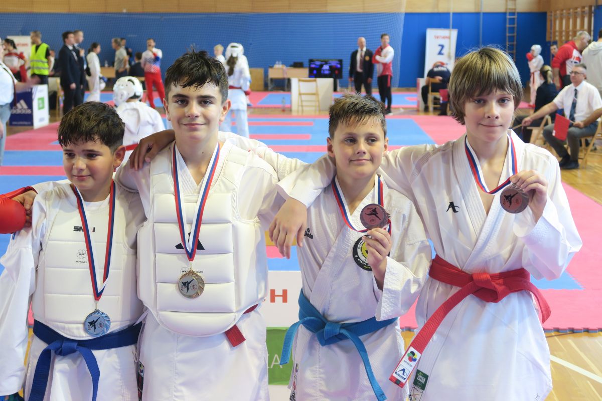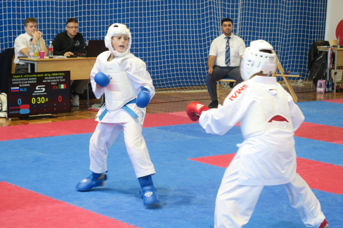 Da so brežiški dečki vsestranski tekmovalci, so dokazali tudi na nastopih v športnih bojih. Najprej se je v kategoriji U12 kumite dečki -56 kg v pisani mednarodni druščini izkazal Gašper Štern. Po dveh zmagovitih borbah je v finalu moral priznati premoč izkušenejšemu nasprotniku iz Bosne in Hercegovine. Okoli vratu si je nadel odlično srebrno medaljo.