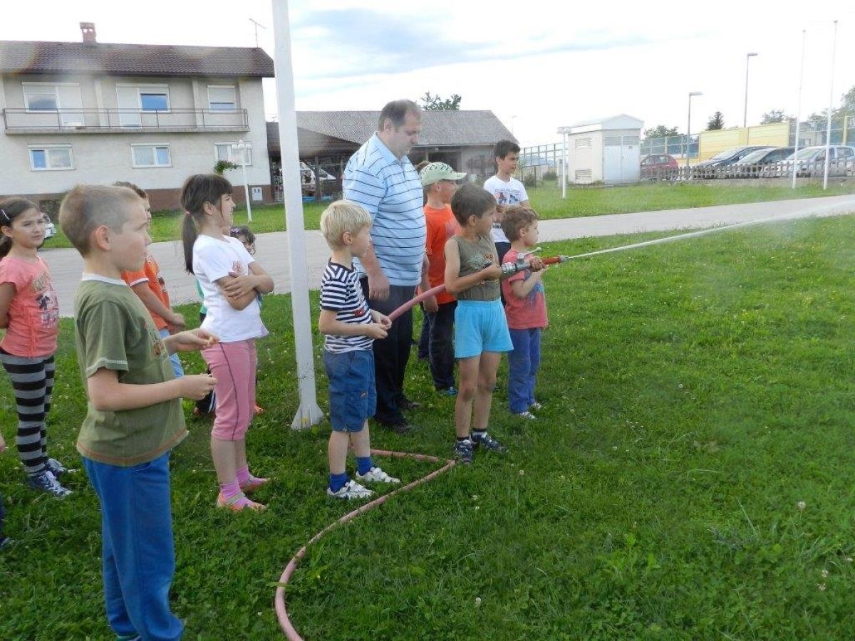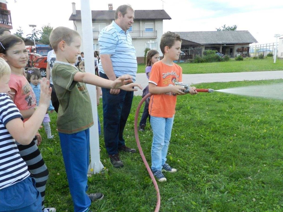 Gasilci so nam predstavili vaje razvrščanja, raztegovanje in navijanje cevi, gasilnike na prah, peno in CO2. Naučili so nas delati tkalski, tesarski in jamborski vozel. Razkazali so nam svojo opremo in nam demonstrirali uporabo izolirnega dihalnega aparata. Ker pa so to bile gasilske delavnice, tudi brez špricanja ni šlo.