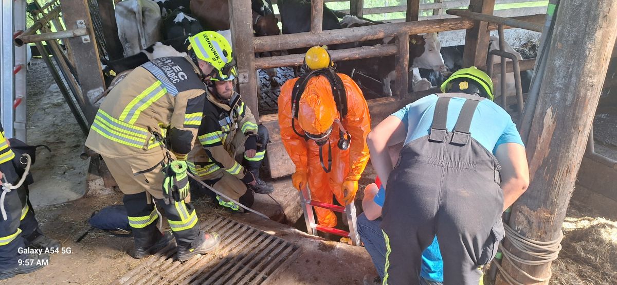 Gasilci Prostovoljnega gasilskega društva (PGD) Stari Trg so bili dopoldne obveščeni, da je na območju Slovenj Gradca v gnojno jamo padlo govedo.