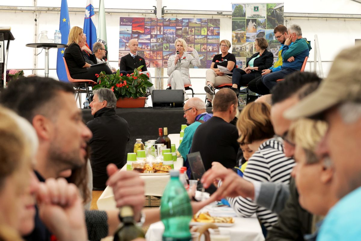 Srečanje pod Najevsko lipo v občini Črna na Koroškem, ki se ga je kljub slabemu vremenu udeležilo več kot 200 ljudi, med njimi predsednica DZ Urška Klakočar Zupančič, je danes potekalo ob razmislekih o pomenu ohranjanja slovenskega jezika in kulture, sodelovanja ter tudi kritik zaradi centralizacije države, kot jo občutijo na Koroškem.