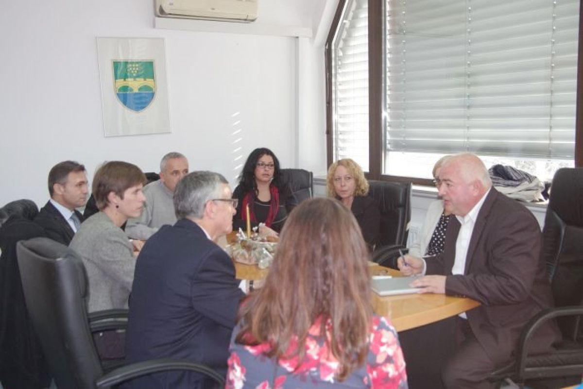 Občina Škocjan je včeraj gostila novega ameriškega veleposlanika v Sloveniji Brenta Hartleya. Prišel je s sodelavci, v delegaciji pa so bili tudi predstavniki Urada za narodnosti RS z direktorjem Stanetom Baluhom na čelu. Temi pogovora sta bili namreč predstavitev in razvoj gospodarstva v škocjanski občini ter romska problematika.
