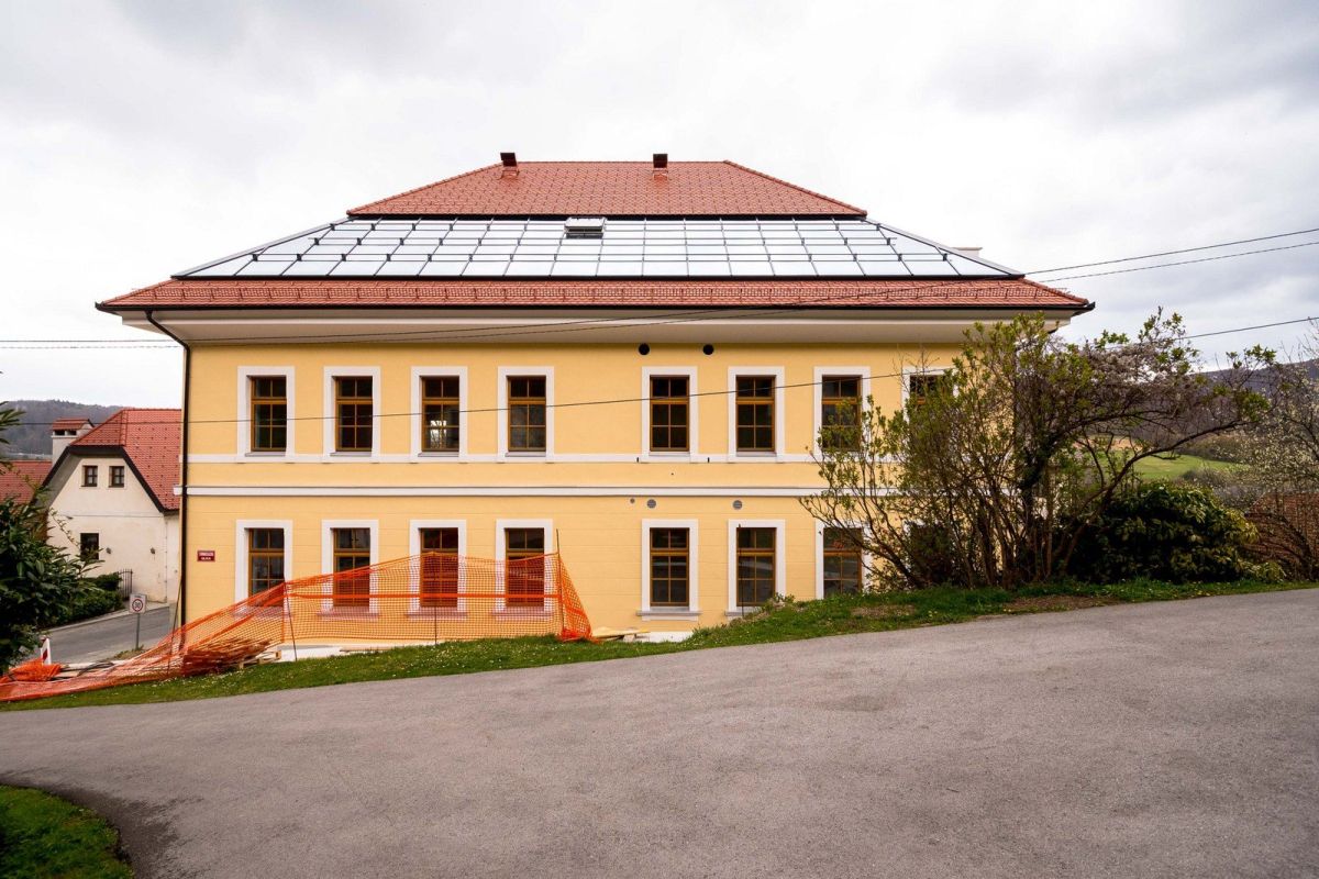 Na zunanjosti objekta je obnovljena fasada s končnim dekorativnim slojem. Zaključeno je tudi ostrešje objekta s klasično streho in deloma s panoramskimi okni, ki ponudi čudovit razgled s pogledom na mestno jedro Višnje Gore in njeno okolico.