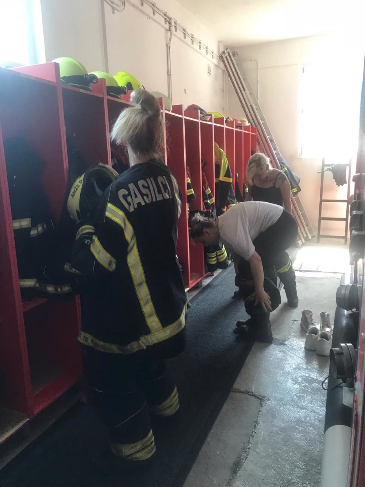 Seveda nas niso pustili stati križem rok. Štirje člani našega uredništva so se preizkusili v oblačenja polne gasilske opreme po ustreznem postopku. Z nekaj zapleti je uspelo vsem štirim, ki so se ob tem neizmerno zabavali. Seveda smo se, kot se za novinarje spodobi, za gasilci odpeljali na kraj dogajanja. Bil je požar, zagorelo je pogonsko gorivo. Vročina je bila neizmerna, v gasilski opremi pa je vse še huje. Požar ni trajal dolgo. Gasilci so takoj vedeli, da z vodo takšnega požara ne bodo pogasili, temveč ga bodo samo še bolj razvneli. Prava izbira je bilo gašenje s peno, ki je ogenj zadušila v zelo kratkem času.