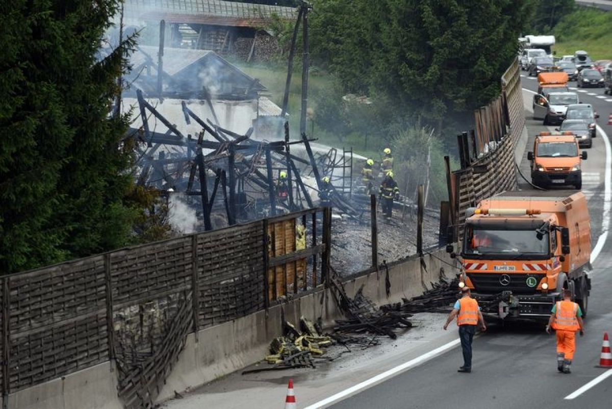 Zagorel je poslovni objekt in trije avtomobili. Plamenom ni ušla niti protihrupna zaščitna ograja ljubljanske obvoznice.