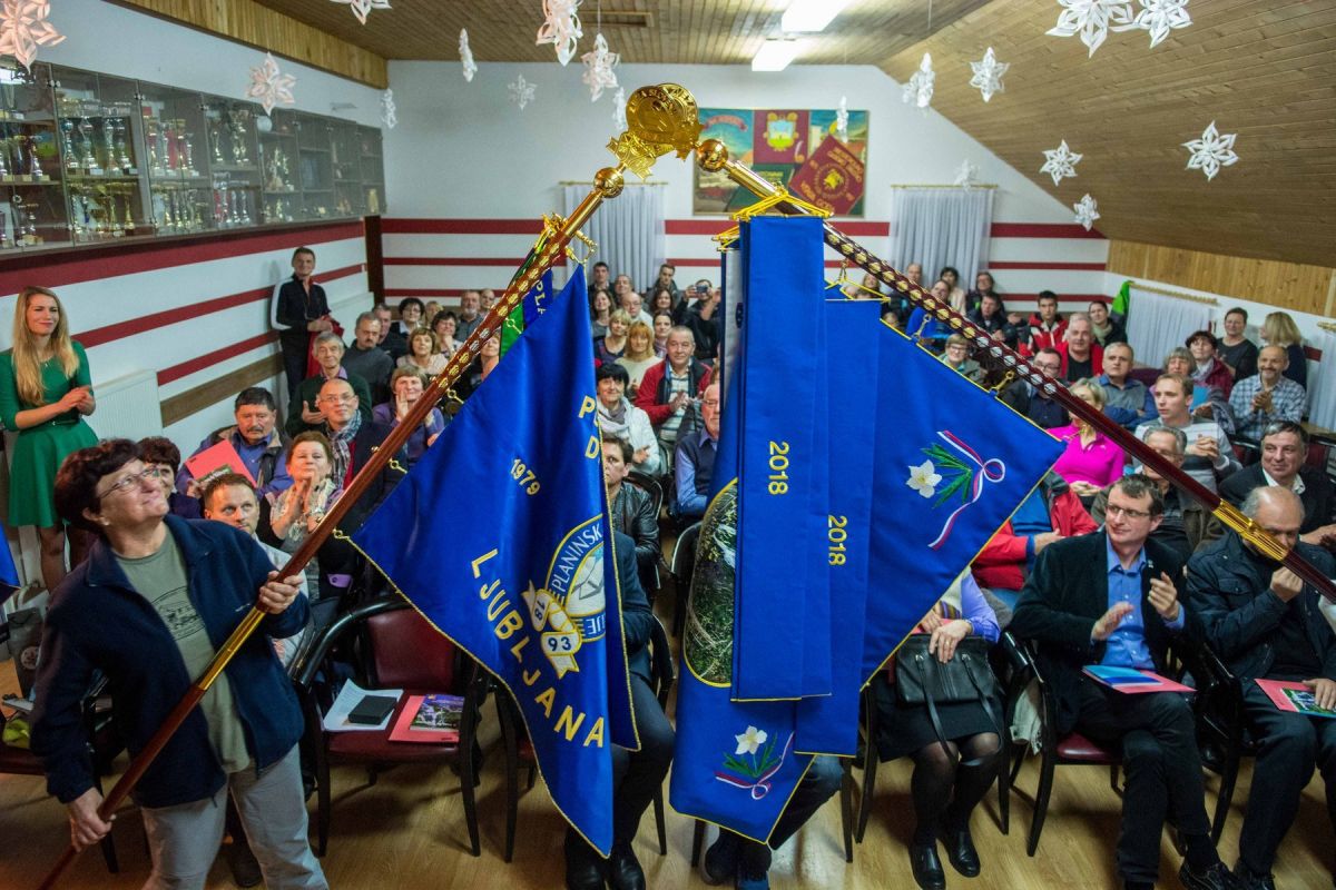 Na prireditvi so razvili tudi društveni prapor, na katerem je na prednji strani upodobljena zaščitni znak društva – polž pohodnik, na zadnji pa je Lehnjakov slap na Kosci z motivi teloha. Praporščak je postal Boštjan Skubic, njegov pomočnik pa Tone Jevnikar. Društvo se je ob tej priložnosti zahvalilo številnim donatorjem in članom društva, brez katerih ne bi tako uspešno delovalo.