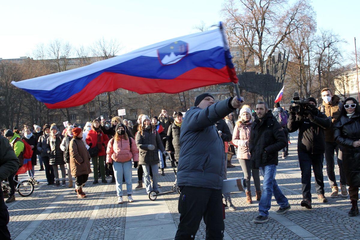FOTO: Nekaj sto protikoronskih protestnikov vztrajalo dve uri
