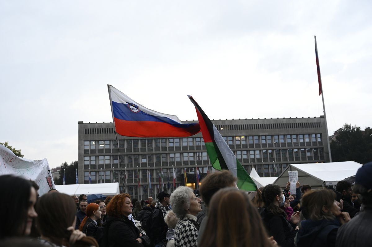 Na ljubljanskem Trgu republike je danes potekal shod za Palestino, ki ga je pod geslom Konec nasilju - konec apartheidu pripravilo gibanje za pravice Palestincev.