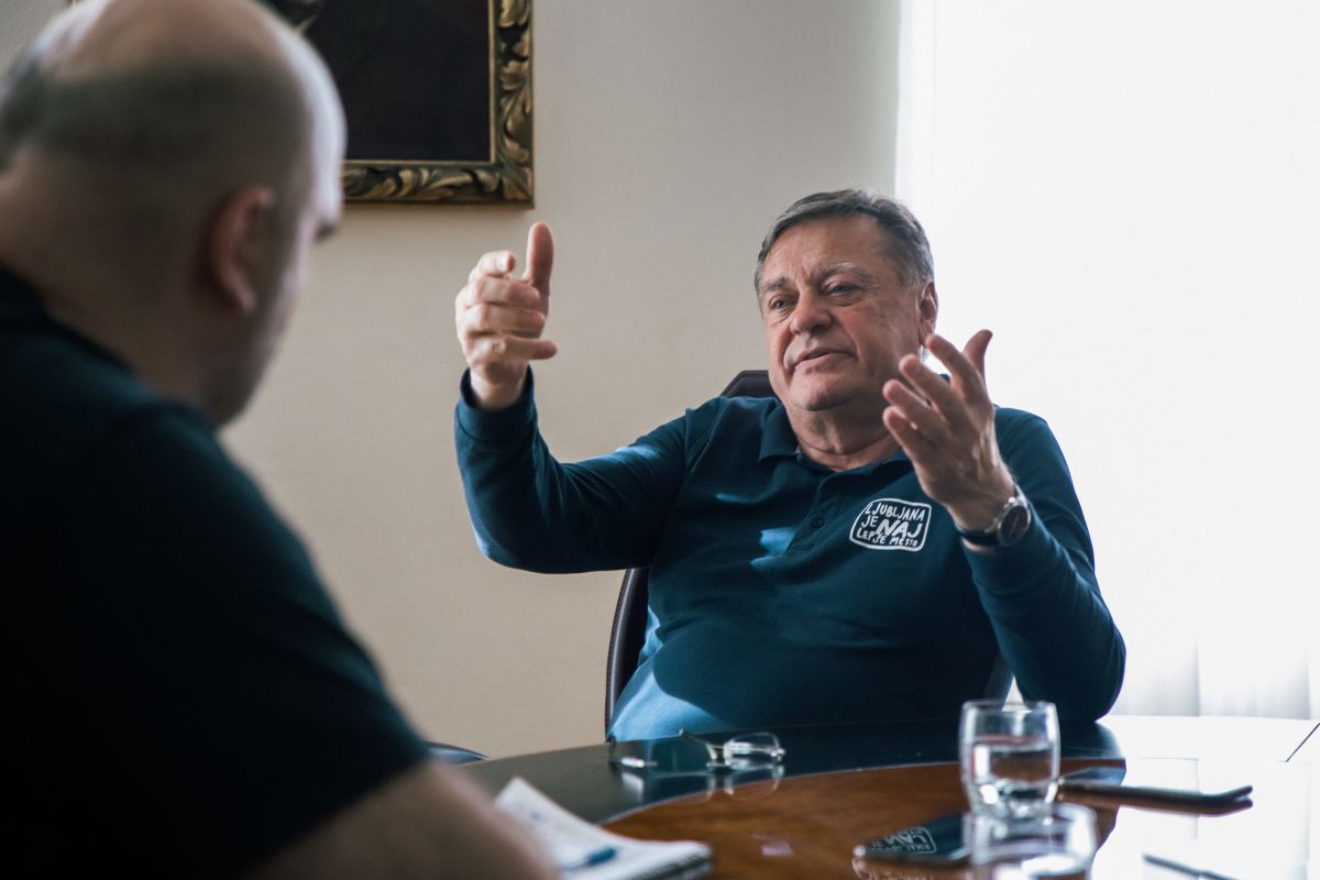 Z ljubljanskim županom Zoranom Jankovićem smo se sestali v mestni hiši, v petek pozno popoldne, ko se delovni utrip v naši prestolnici sicer umirja. Sprejel nas je v sejni sobi, ki je med drugim okrašena s portretom župana Ivana Hribarja, zastavo, s katero se lahko diči le najbolj zelena prestolnica Evrope, ter priznanji srbskega predsednika Aleksandra Vučića in ruskega predsednika Vladimirja Putina. In na vse je prvi mož Ljubljane enako ponosen. Zagona mu, kot kaže, ne primanjkuje, delovne energije tudi ne, čeprav bi lahko že več let užival v pokoju, se družil z vnuki in se sprehajal po Golovcu.
