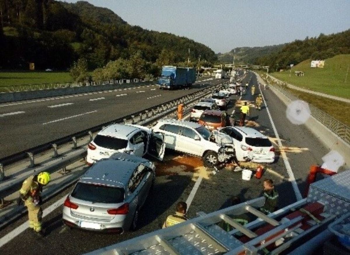 Prva nesreča z udeležbo štirih vozil se je zgodila, ko je državljan Avstrije zaradi prekratke varnostne razdalje trčil v vozila pred seboj. Ta so se zaradi jutranje konice in zgostitve prometa ustavljala v koloni.