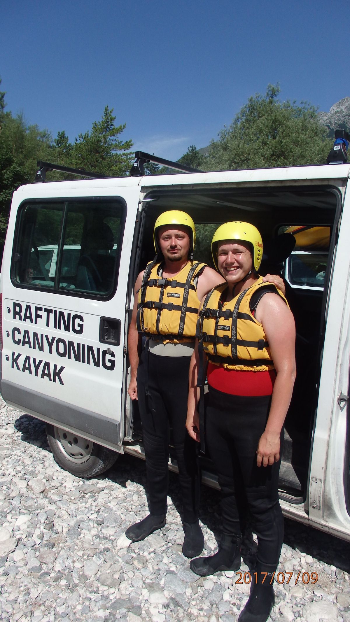 V nedeljskem jutru ju je pozdravilo sonce. Vstala sta okoli 8. ure in se počasi odpravila proti Kobaridu. »Zjutraj sva imela kar nekaj težav. Veliko lažje bi bilo, če bi imela avto ali katerokoli drugo prevozno sredstvo. Tako sva se morala precej dobro organizirati, saj sva se odločila, da se preizkusiva v raftingu na Soči. Iz Borjane sva se do Kobarida odpravila peš in hodila že dobrih 20 minut, ko nama je uspelo dobiti avtoštop. Okoli pol desetih sva se s skupino drugih ljudi podala iz središča Kobarida do Soče, kjer nas je čakal rafting. Zame je bila to vznemirljiva izkušnja, saj sem se prvič preizkusil v raftanju; ta aktivnost je sicer precej draga, a mi ni žal, da sem jo preizkusil,« razlaga Damjan. »Priznam, ni mi bilo vseeno. Pravzaprav me je bilo kar malce strah. Soča namreč ni ravno mirna reka in na vsaki strani so skale. Vendar pa nam je prijetno hladna osvežitev v vročem dnevu neznansko prijala. Z Malakom sva imela vodiča v najinem raftu, zato sem se počutil precej varno. Dobro uro in pol sem bil tako neprestano pod adrenalinom (smeh),« opiše izkušnjo Damjan.