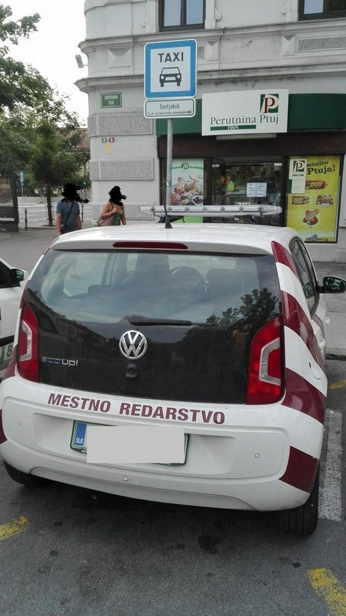 V nedeljo je vozilo mestnega redarstva zasedlo prostor, ki je namenjeno parkiranju taksijev. Zakon in mestni odloki to dopuščajo, pravijo na občini.
